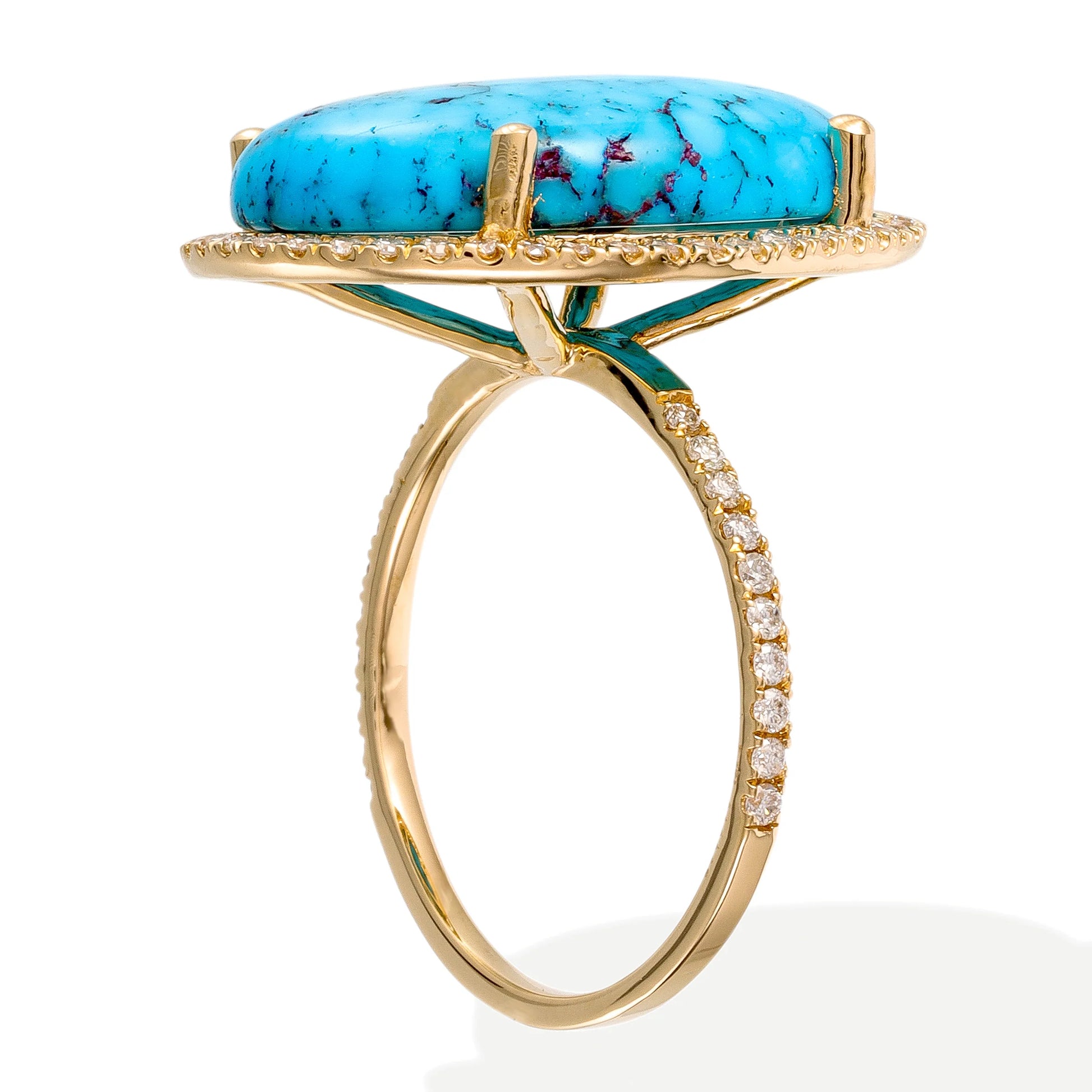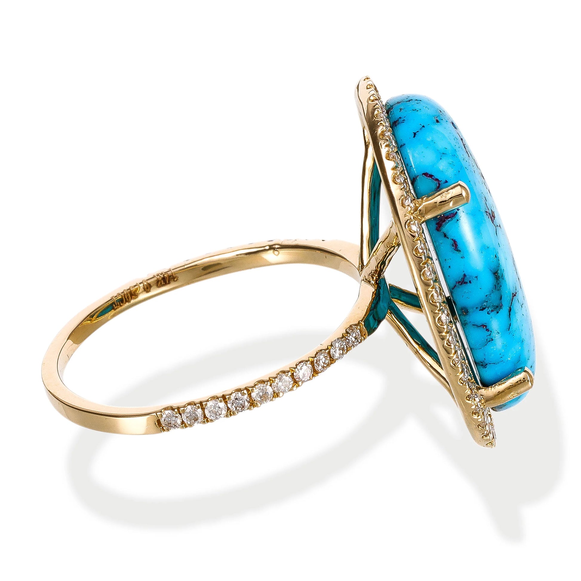 14 KT YELLOW GOLD DIAMOND AND OVAL TURQUOISE RING