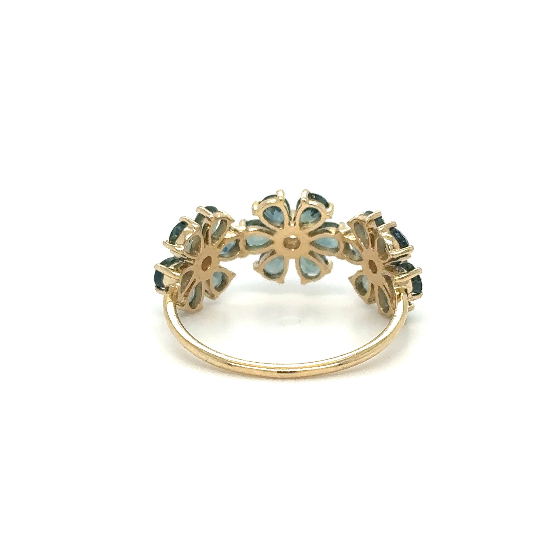 14KT YELLOW GOLD FLOWER RING WITH GREEN SAPPHIRE AND DIAMONDS