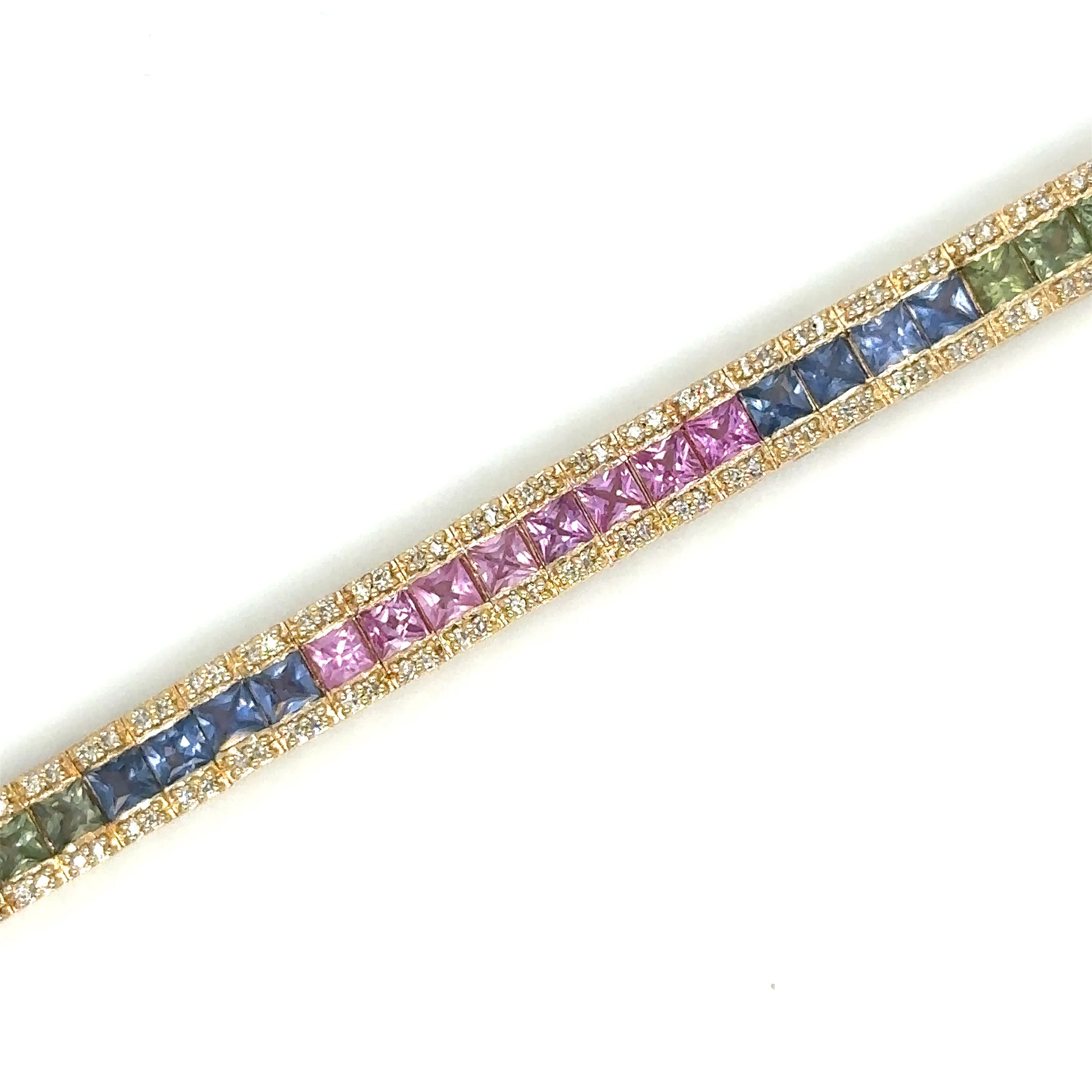 14KT YELLOW GOLD MULTI SAPPHIRE AND DIAMONDS BRACELET 7"