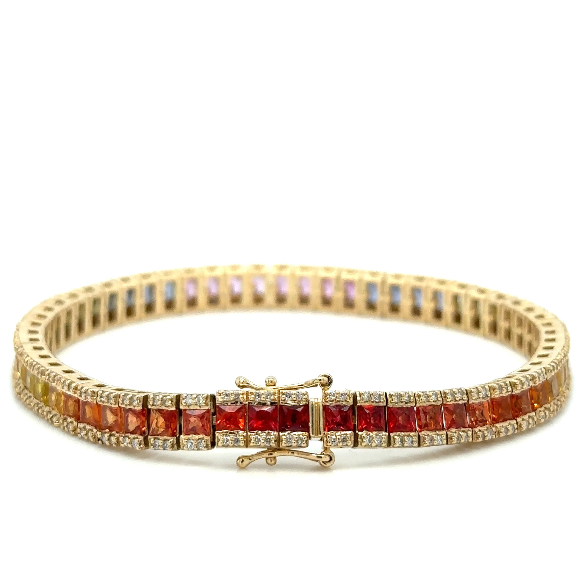 14K YELLOW GOLD MULTI SAPPHIRE AND DIAMONDS BRACELET