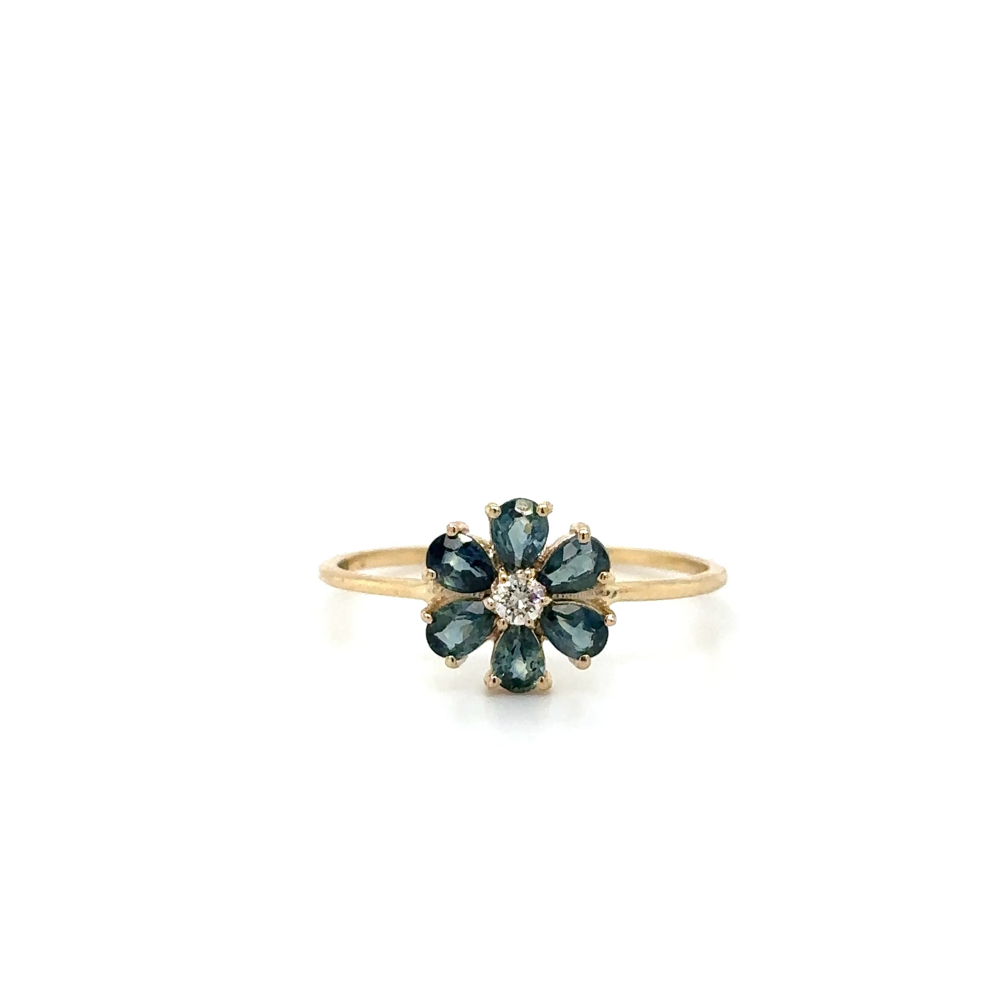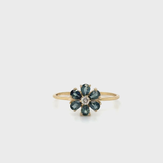 14KT FLOWER RING WITH SAPPHIRE AND DIAMONDS