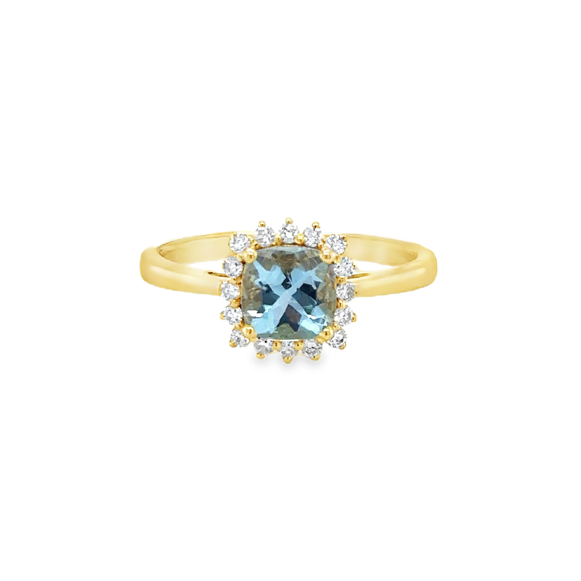 14KT GOLD AQUAMARINE AND DIAMONDS RING