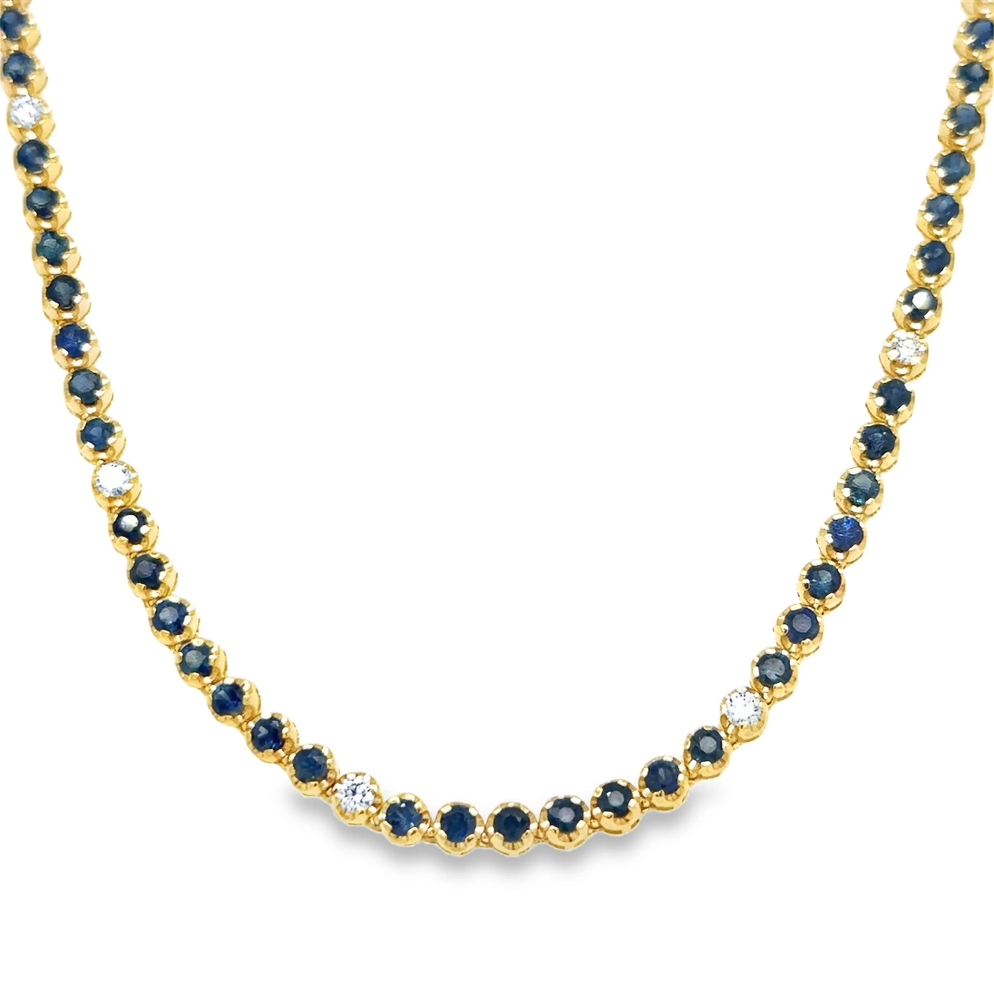 14KT YELLOW GOLD BLUE SAPPHIRE AND DIAMOND TENNIS NECKLACE