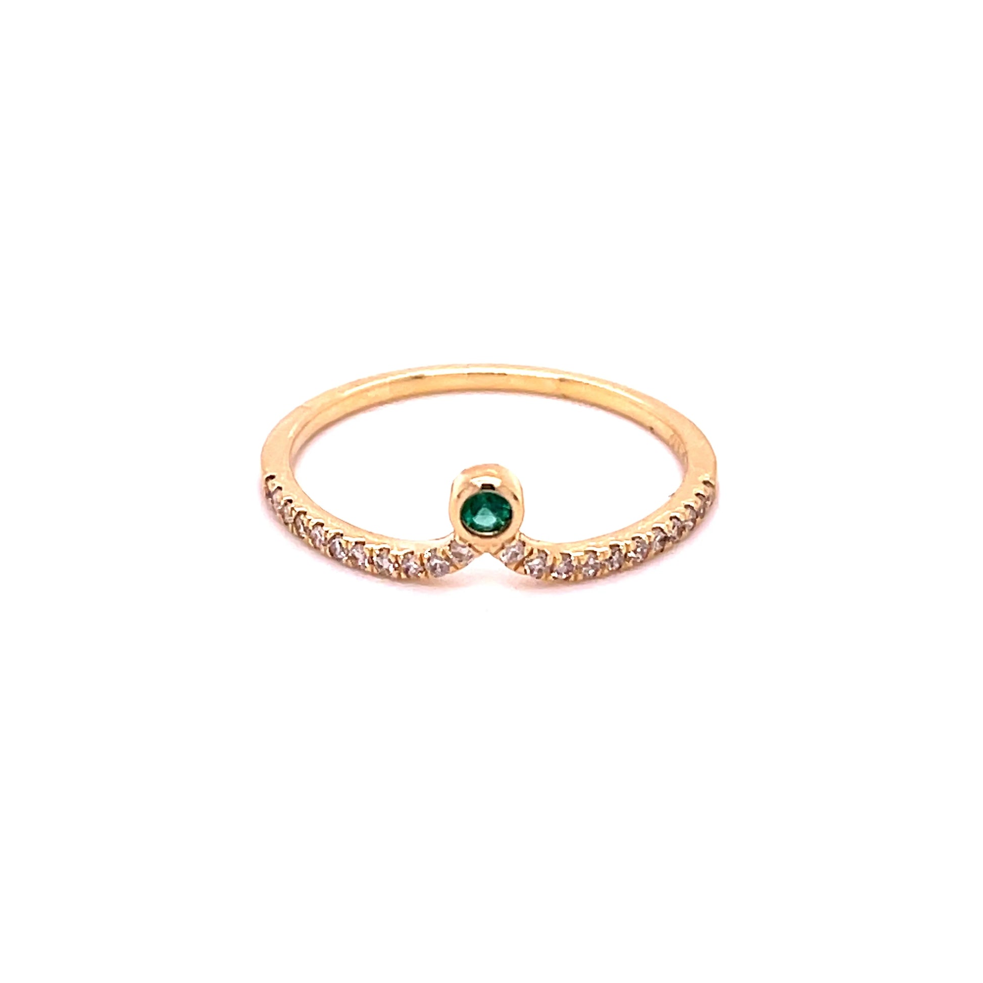14KT YELLOW GOLD EMERALD RING WITH DIAMONDS
