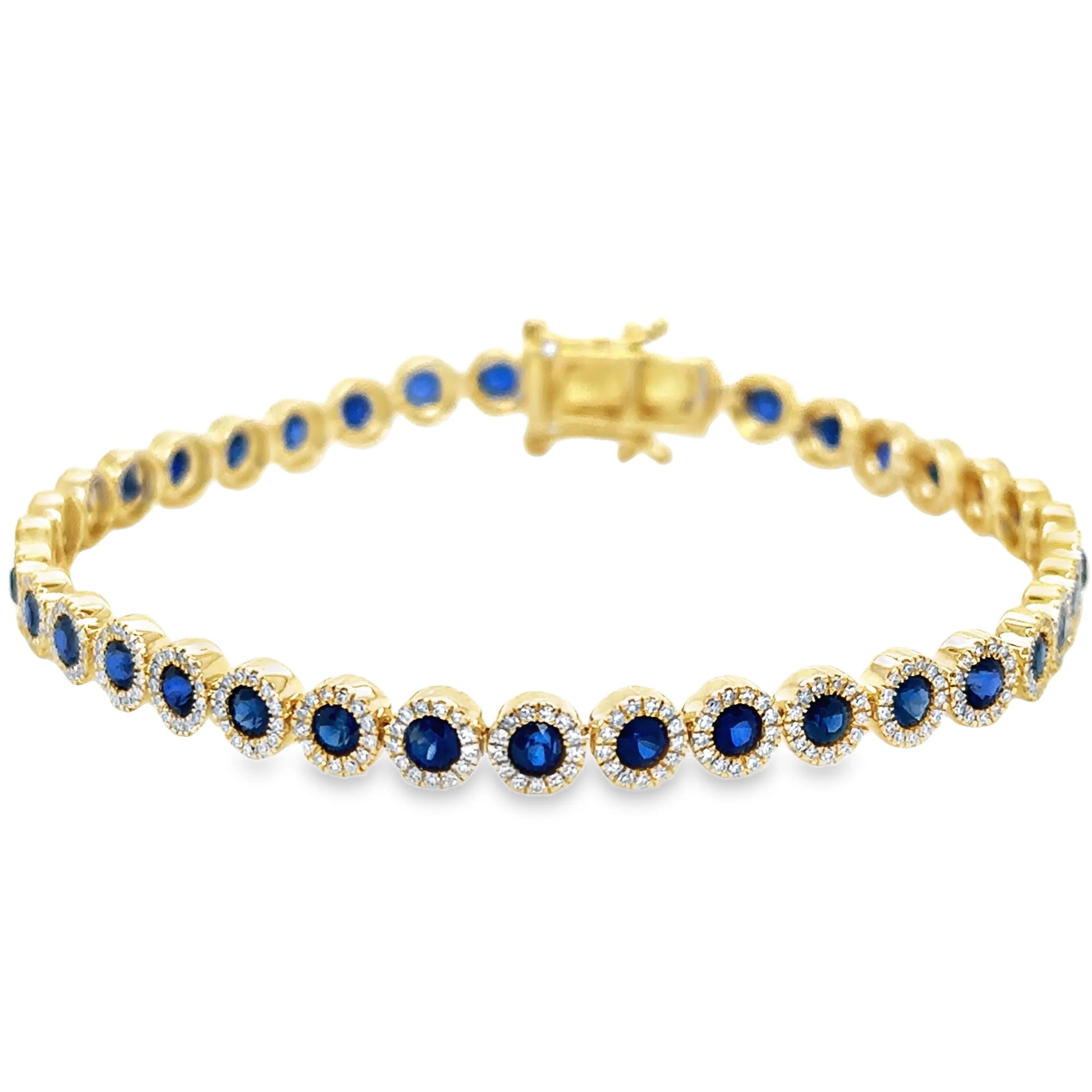 14KT GOLD SAPPHIRE AND DIAMONDS TENNIS BRACELET 7"