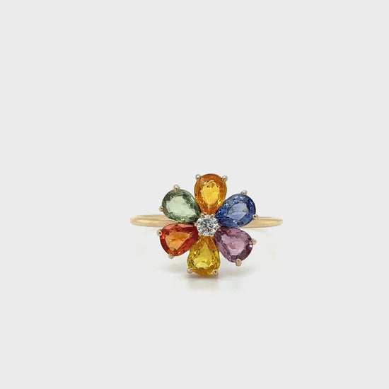 14KT MULTI SAPPHIRE FLOWER RING WITH DIAMONDS