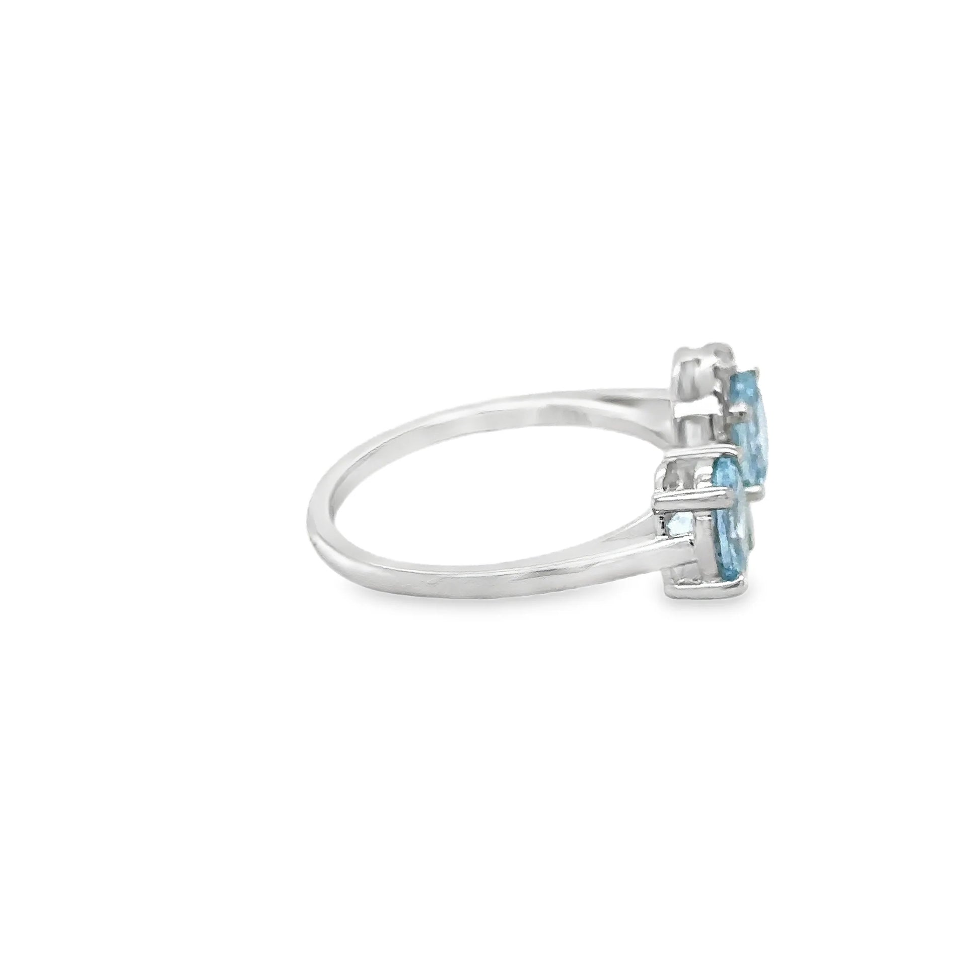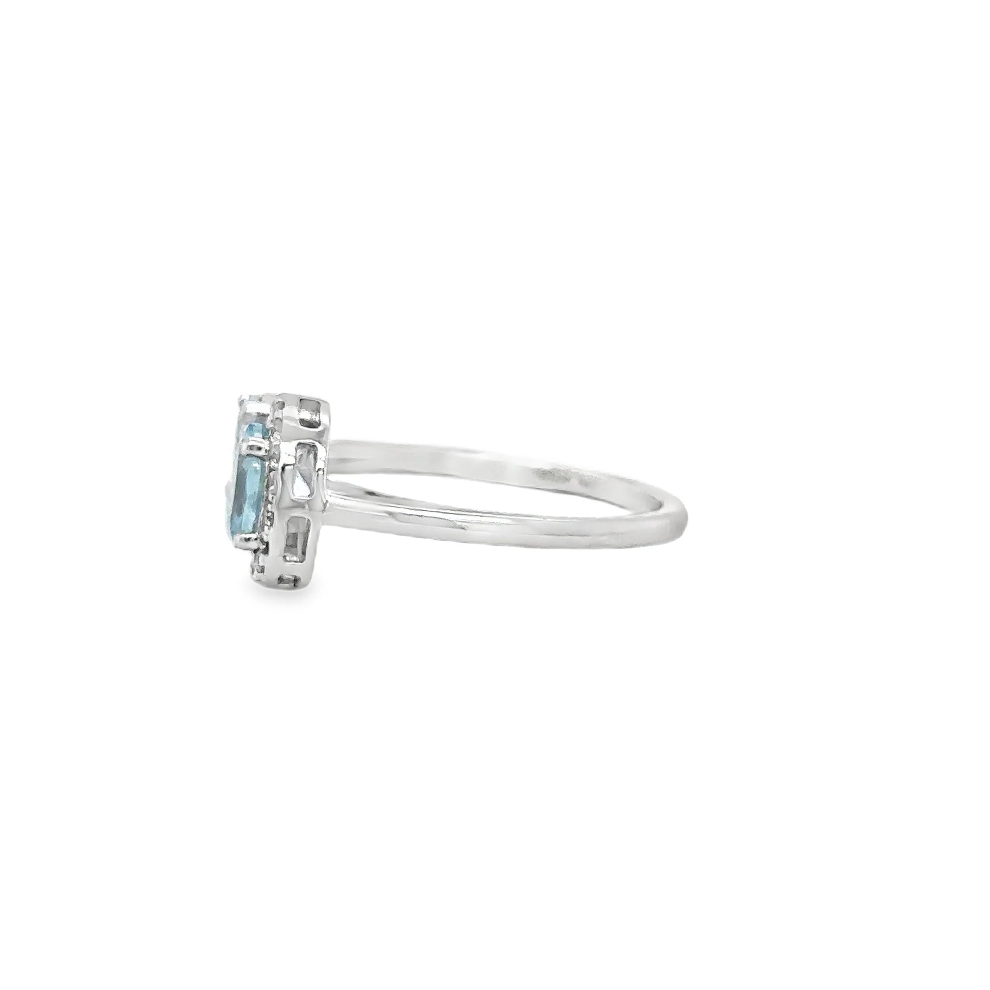 14KT WHITE GOLD AQUAMARINE AND DIAMONDS RING