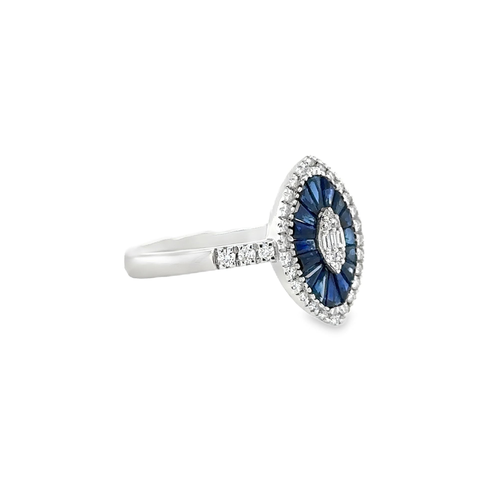 14KT WHITE GOLD BLUE SAPPHIRE AND DIAMONDS RING