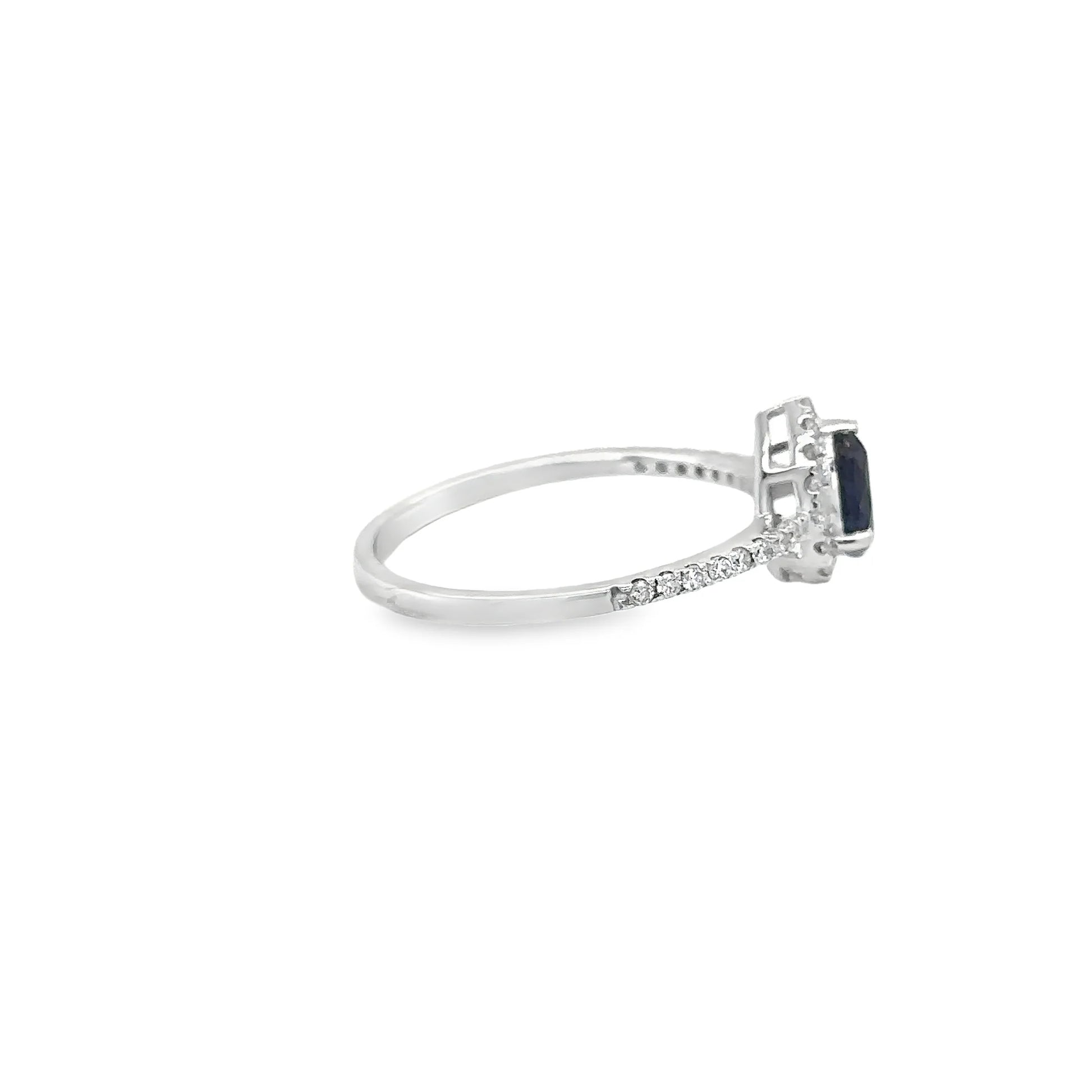 14KT WHITE GOLD CEYLON SAPPHIRE AND DIAMONDS RING