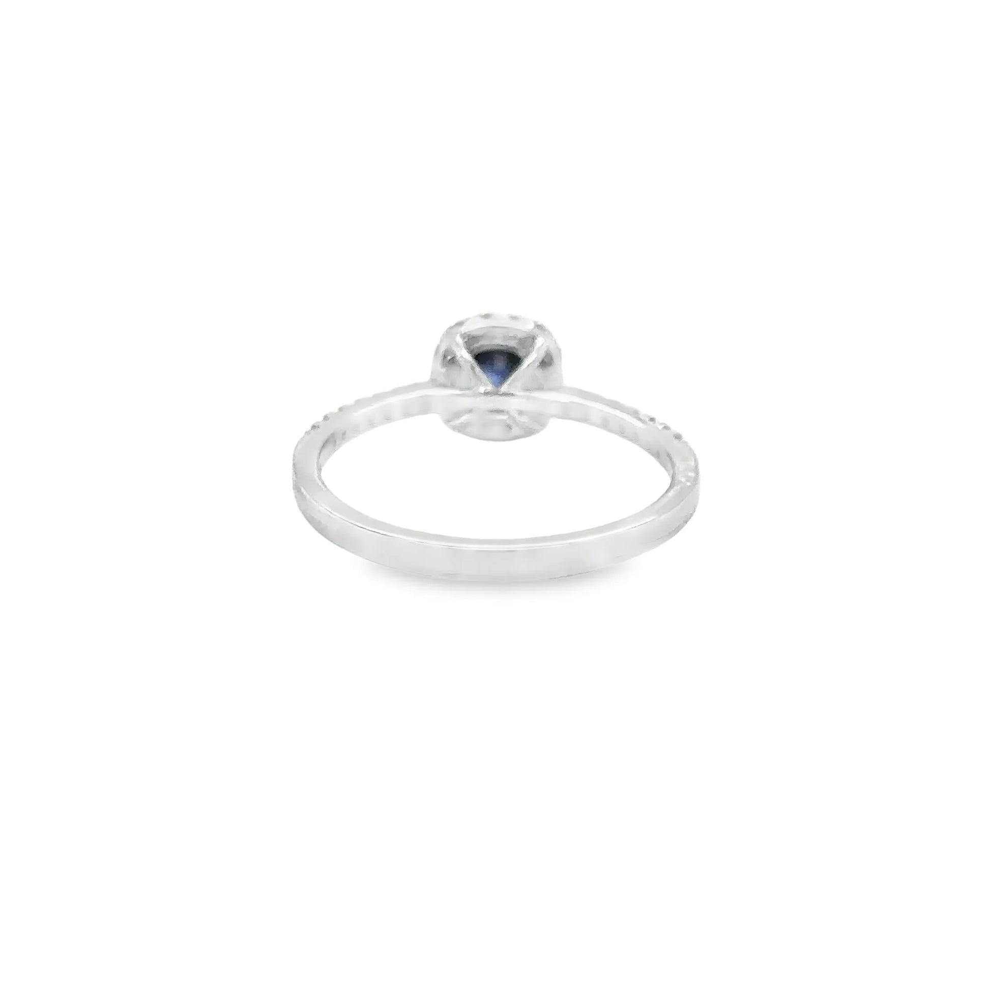14KT WHITE GOLD CEYLON SAPPHIRE AND DIAMONDS RING