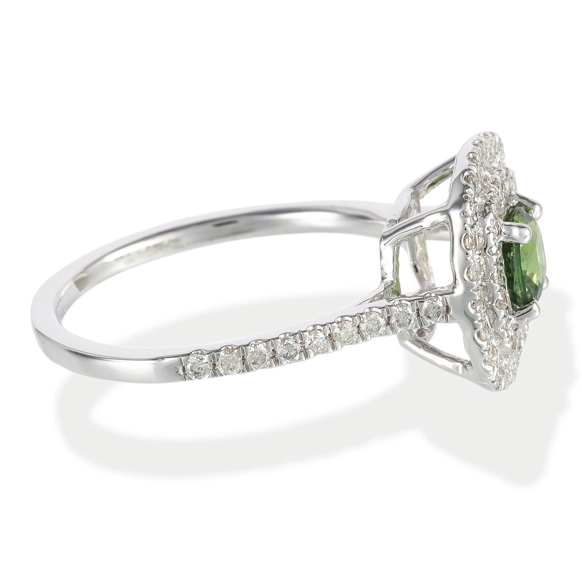 14KT WHITE GOLD DIAMOND & GREEN SAPPHIRE CUSHION SHAPE RING