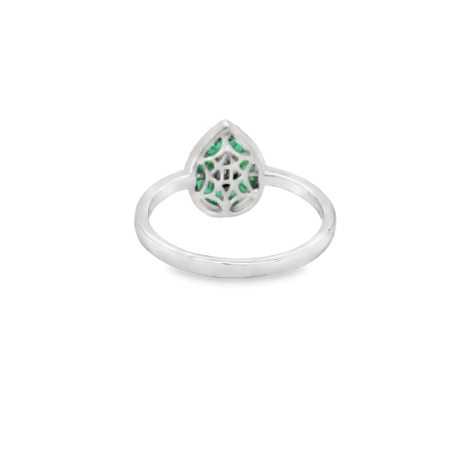 14KT WHITE GOLD EMERALD AND DIAMONDS PEAR SHAPE RING