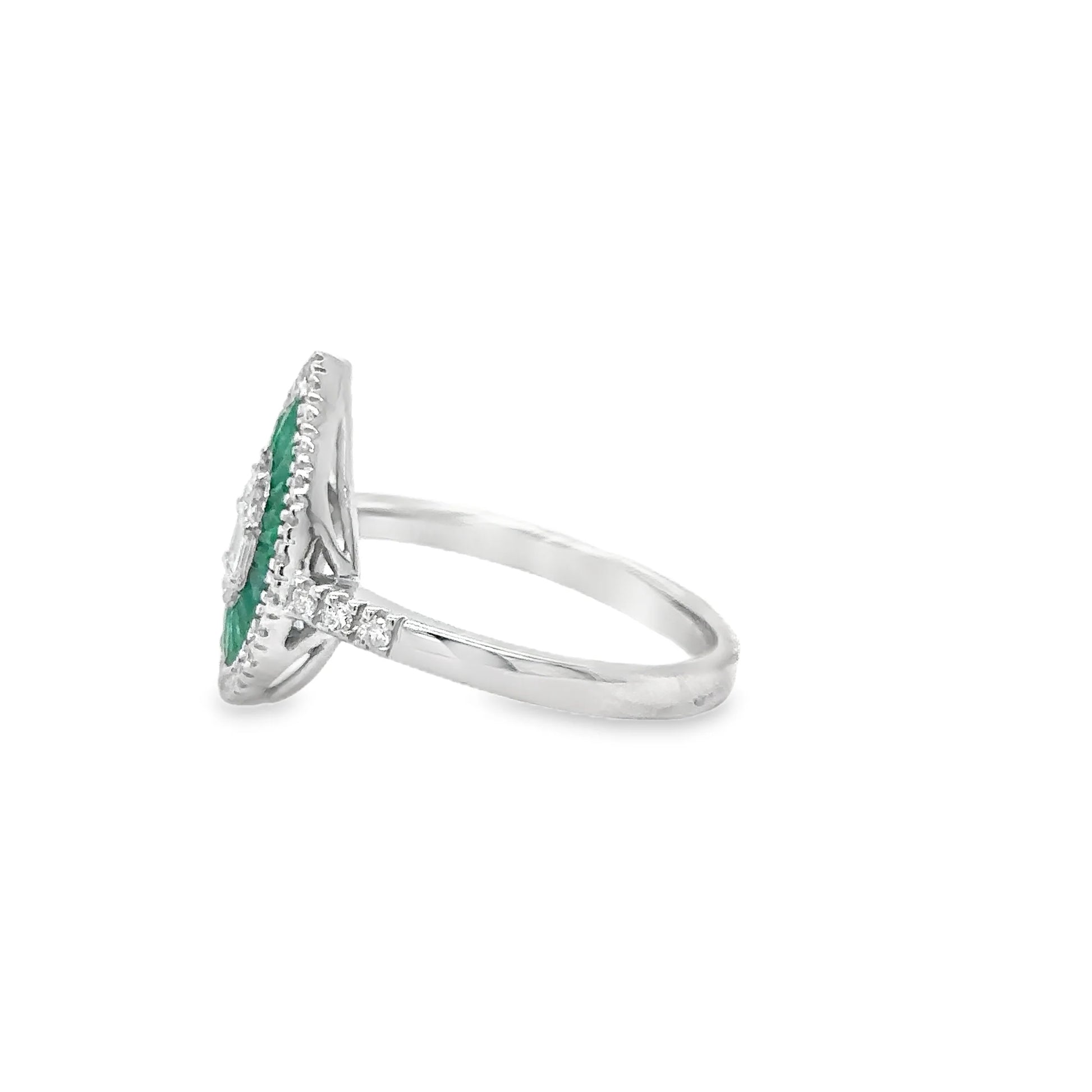 14KT WHITE GOLD EMERALD AND DIAMONDS PEAR SHAPE RING