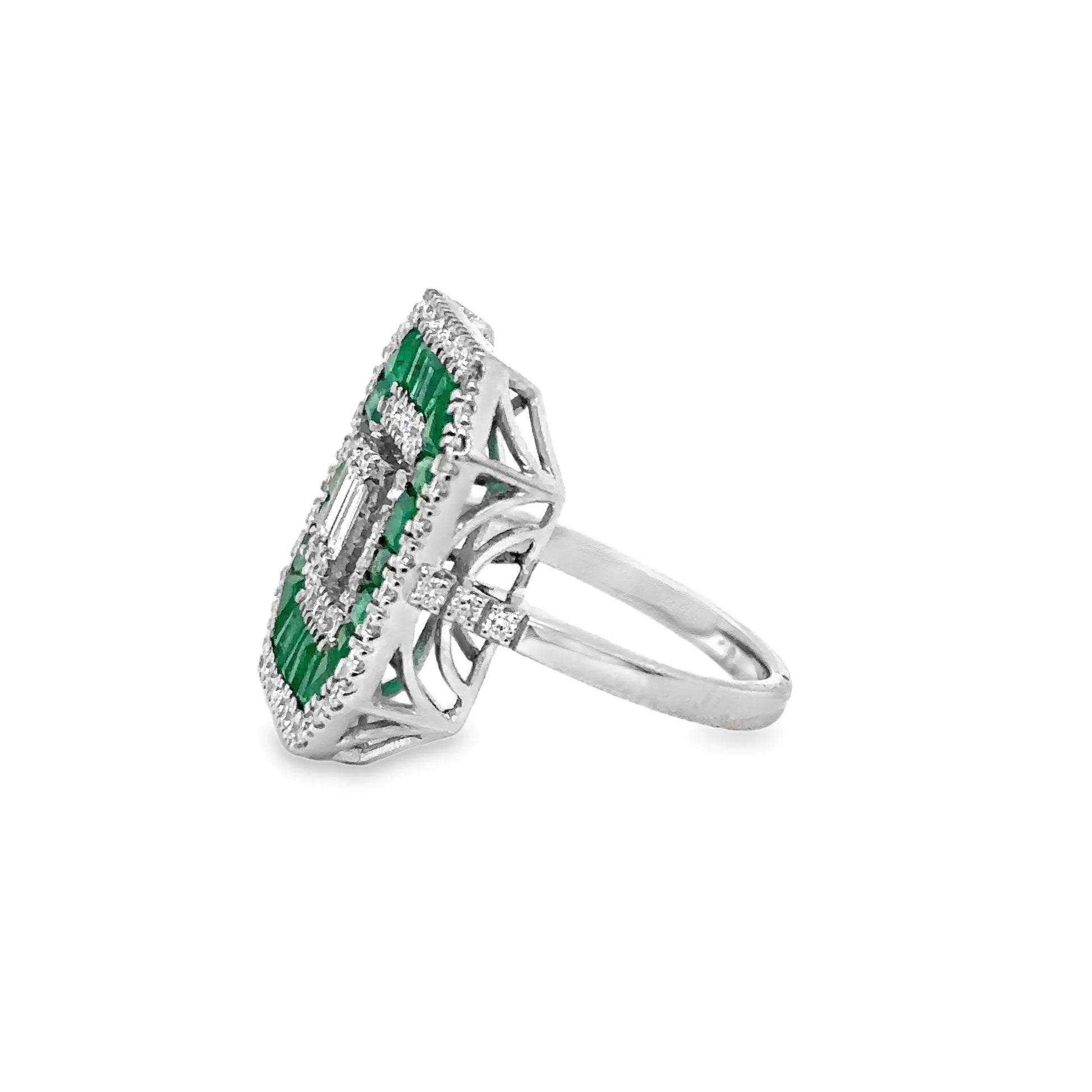 14KT WHITE GOLD EMERALD AND DIAMONDS RING