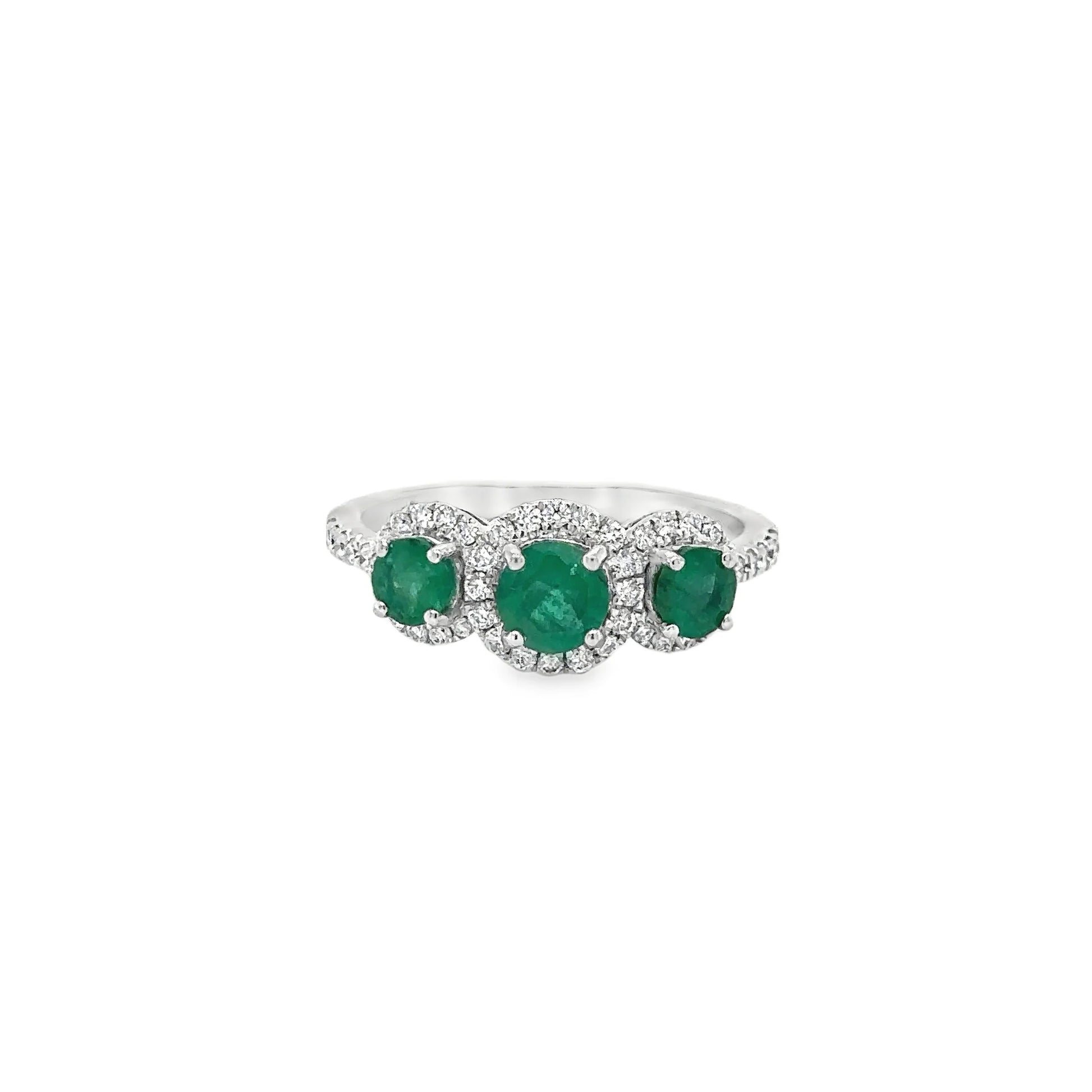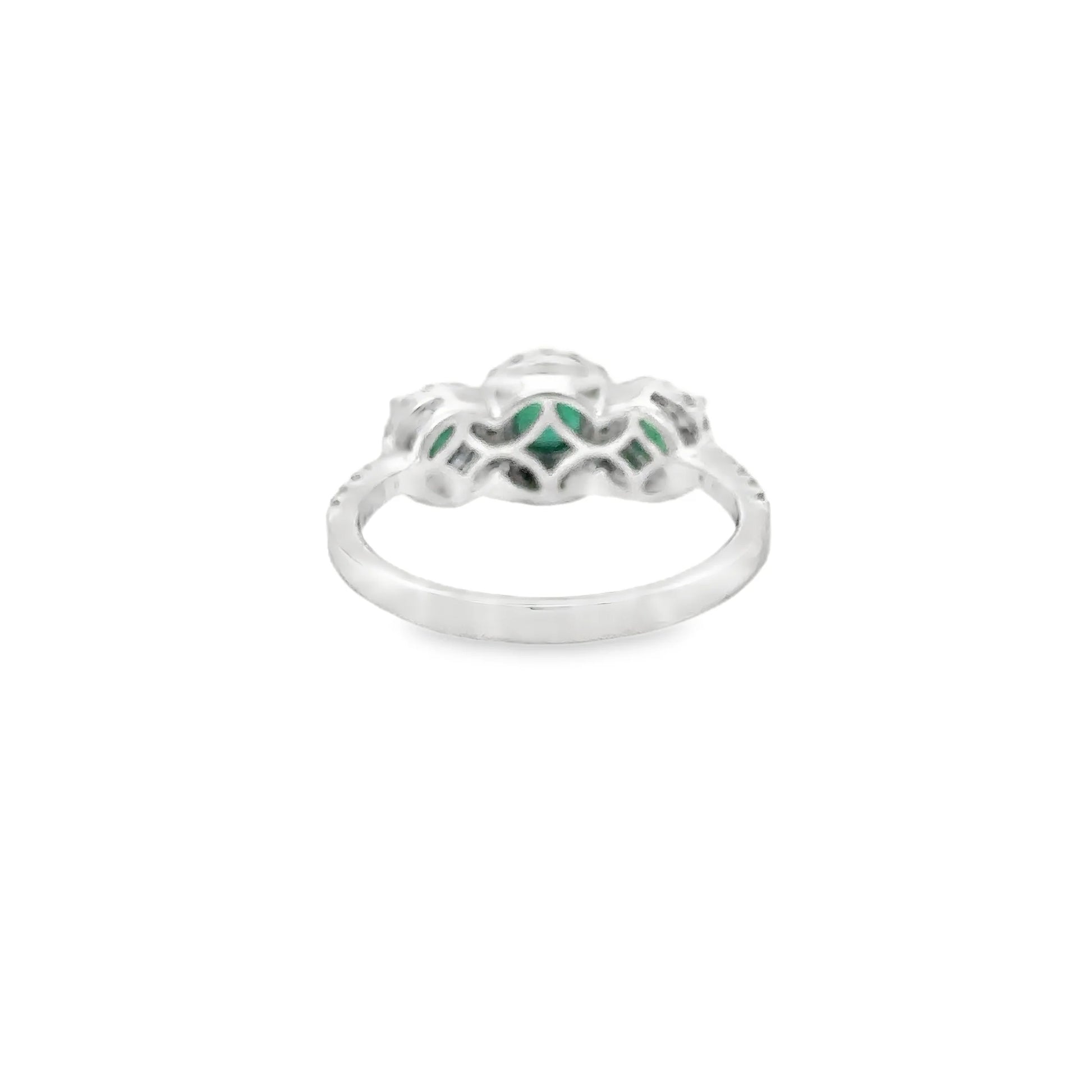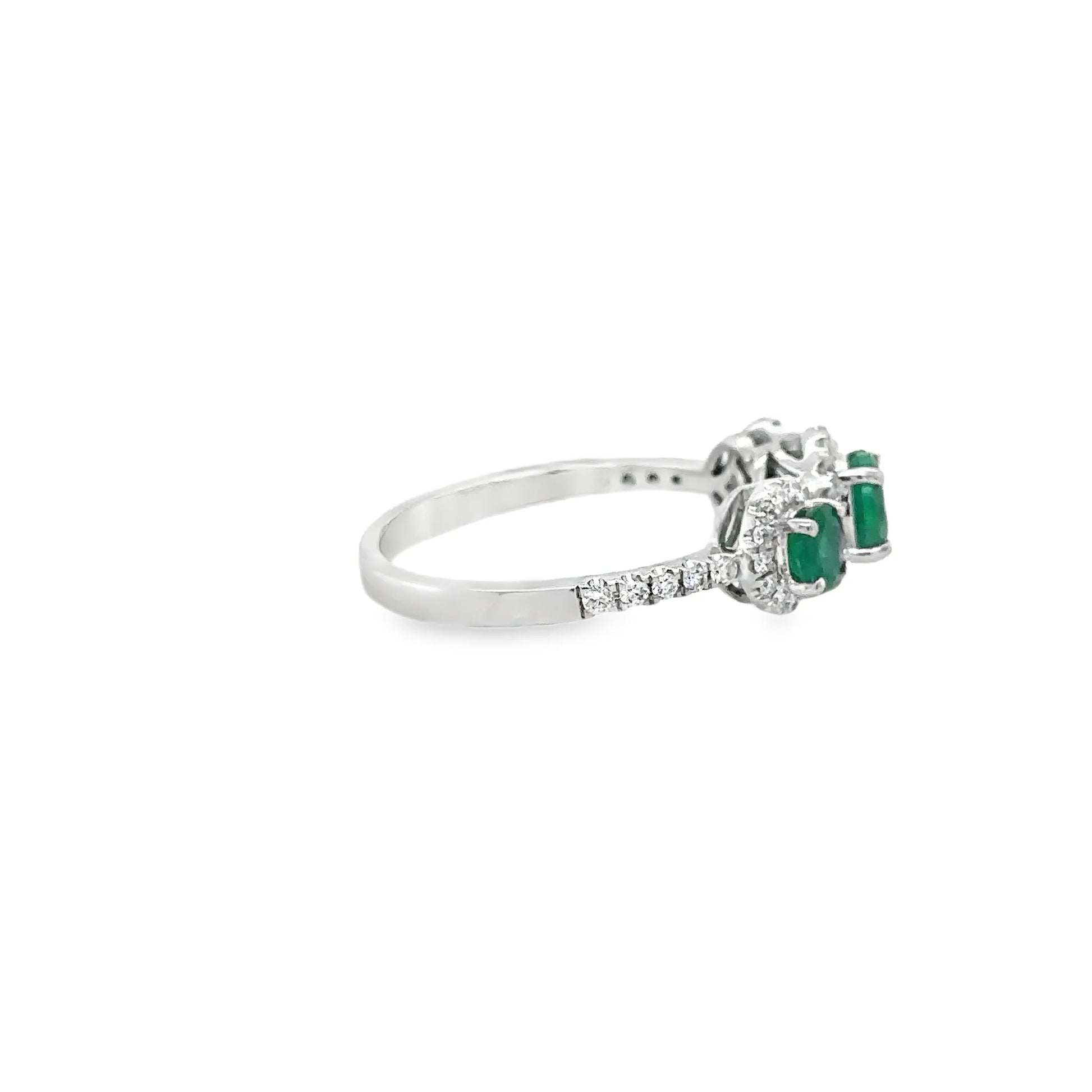 14KT WHITE GOLD EMERALD AND DIAMONDS RING