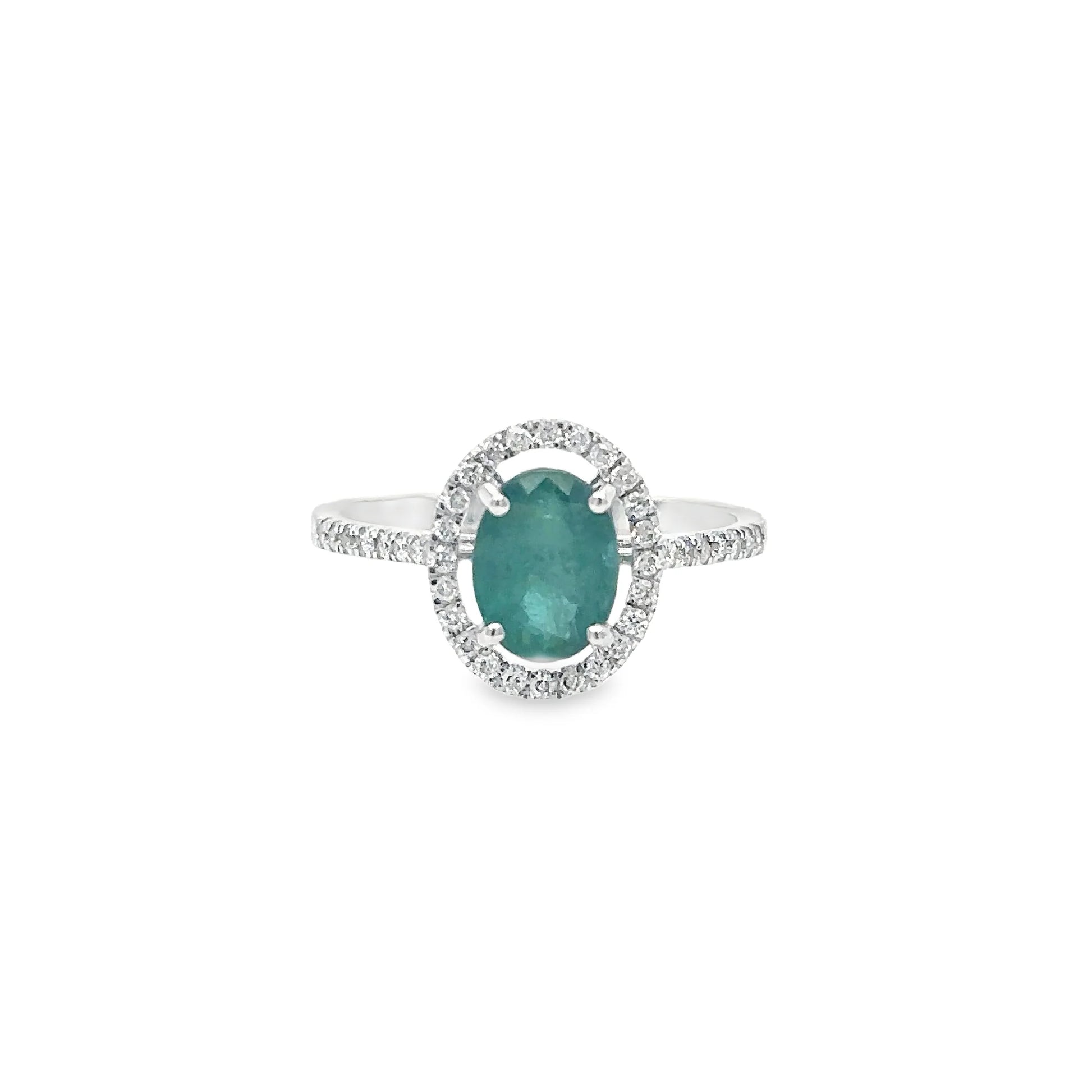 14KT WHITE GOLD EMERALD AND DIAMONDS RING