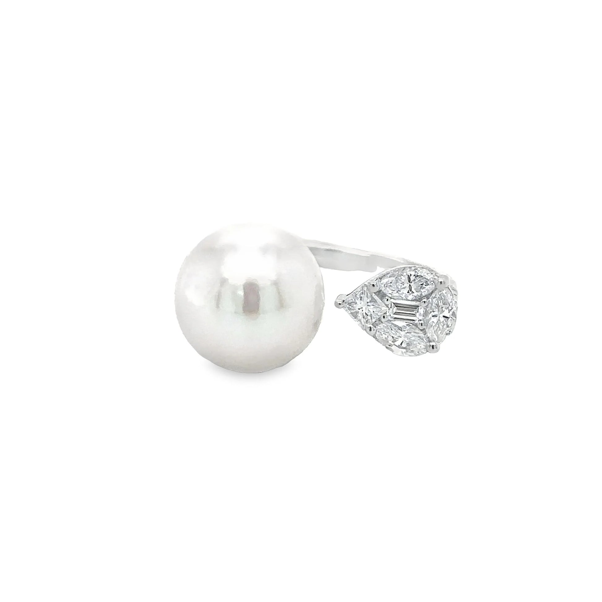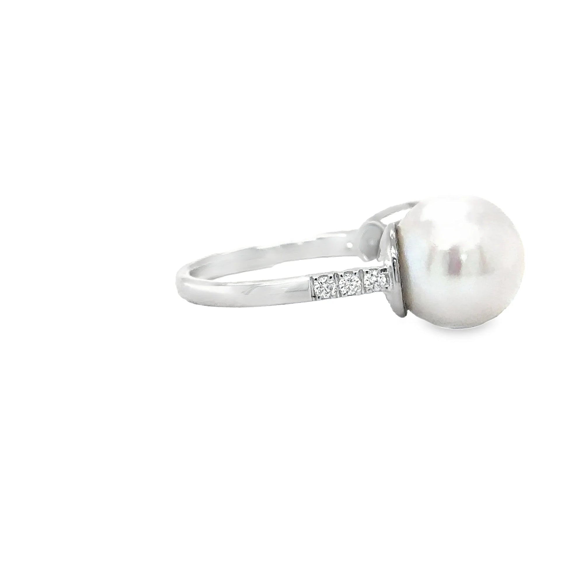 14KT WHITE GOLD FRESH WATER PEARL AND DIAMOND RING