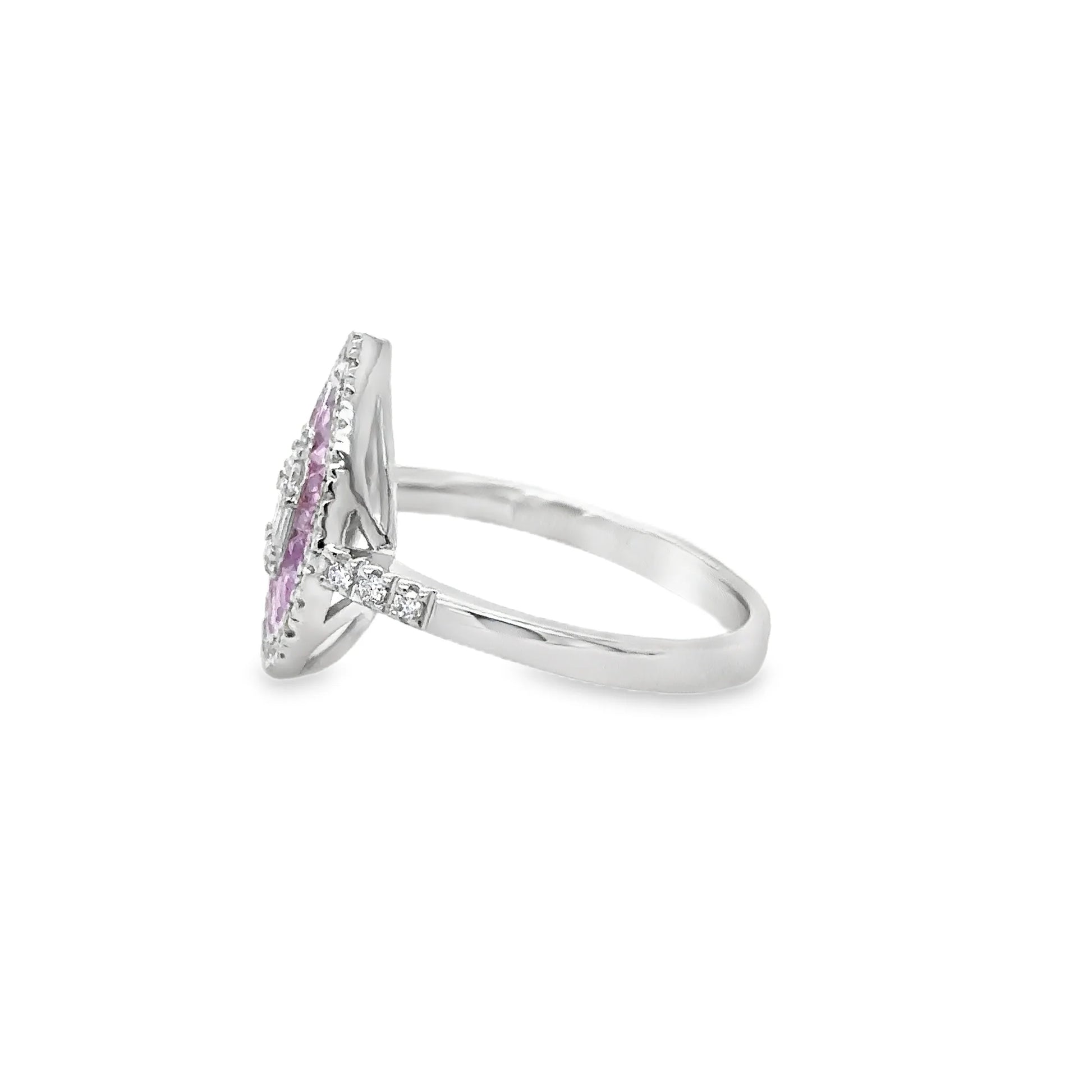 14KT WHITE GOLD PINK SAPPHIRE AND DIAMONDS PEAR SHAPE RING