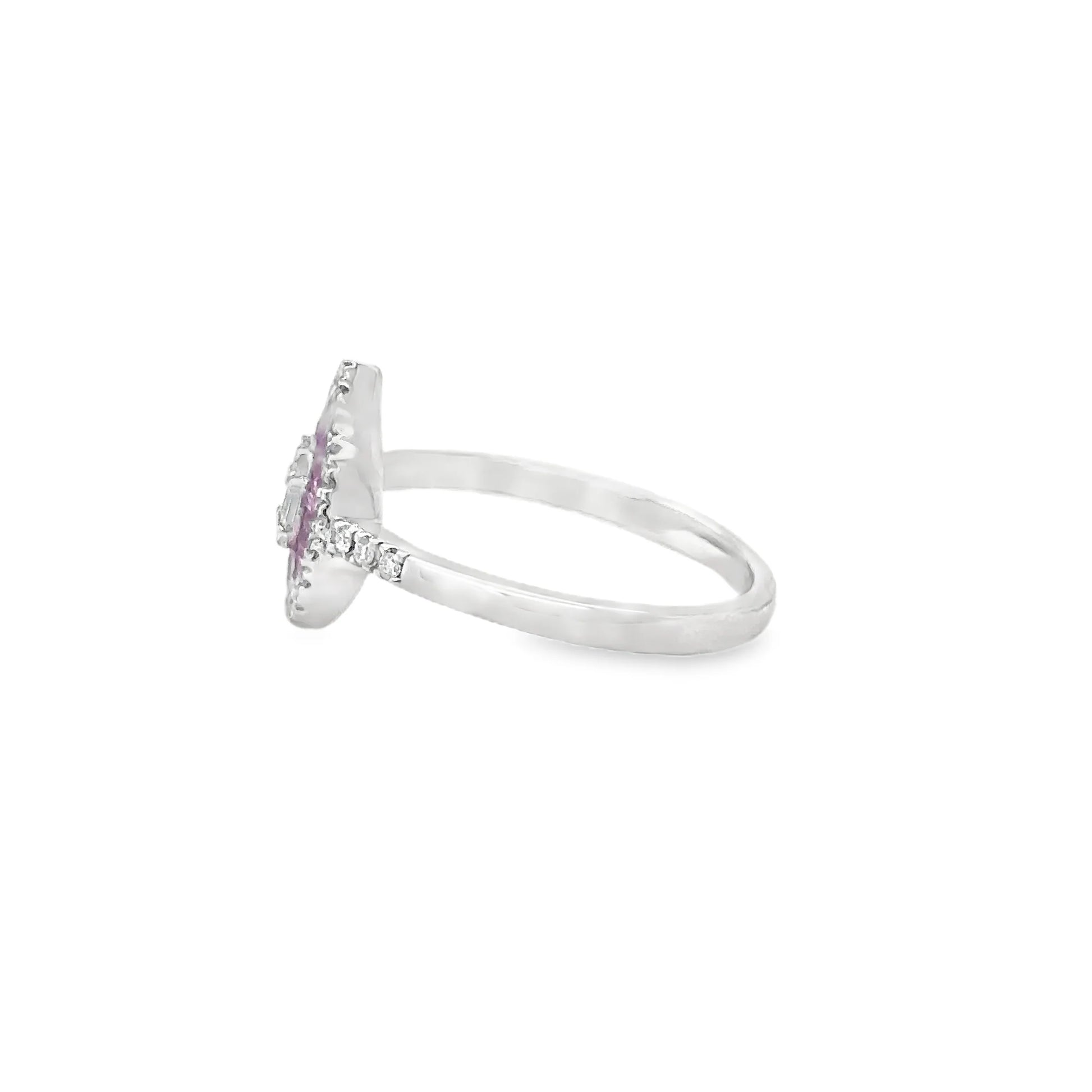 14KT WHITE GOLD PINK SAPPHIRE AND DIAMONDS PEAR SHAPE RING