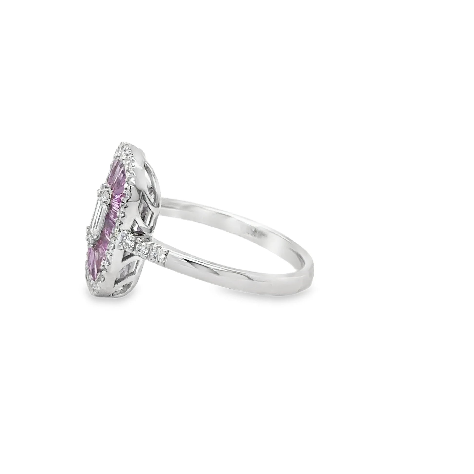 14KT WHITE GOLD PINK SAPPHIRE AND DIAMONDS RING