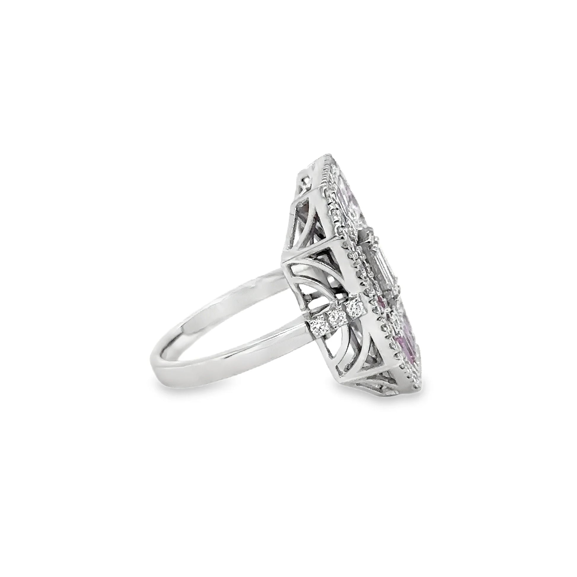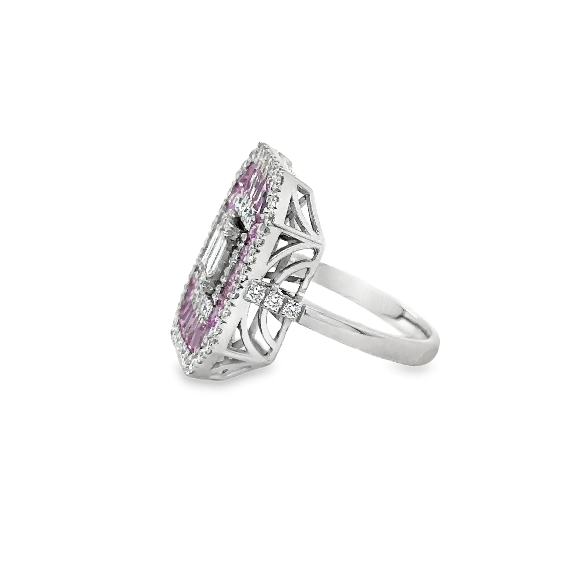 14KT WHITE GOLD PINK SAPPHIRE AND DIAMONDS RING