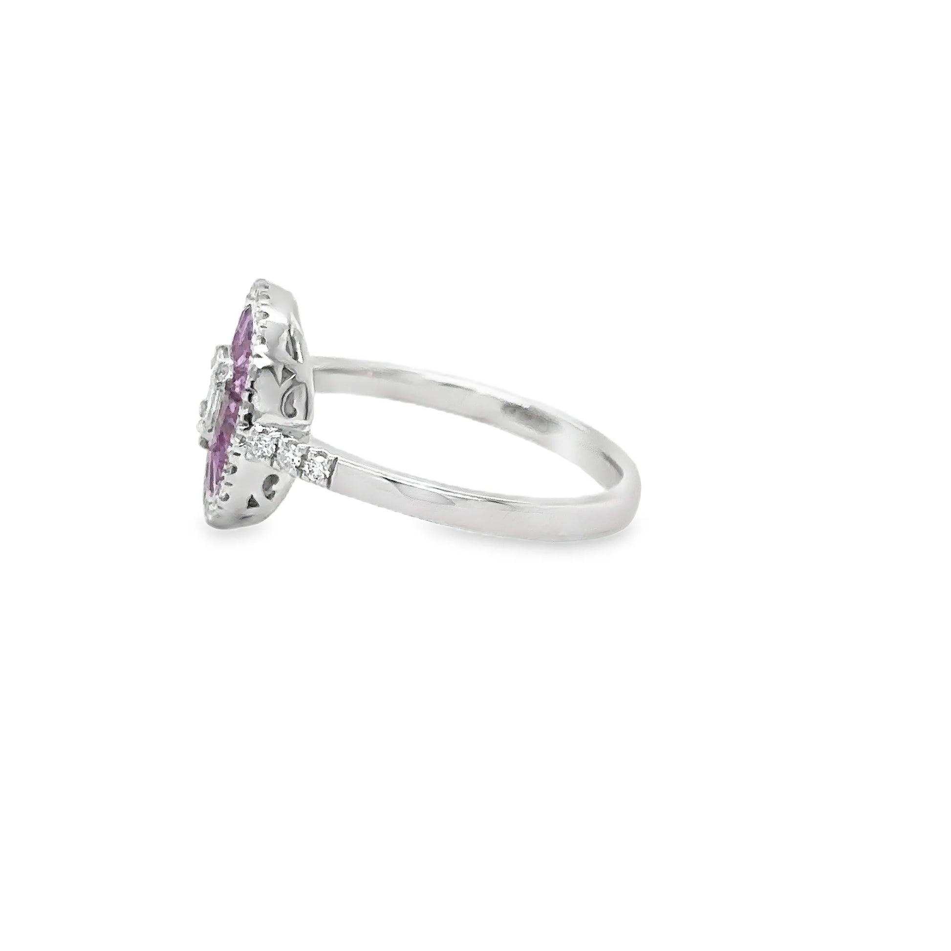 14KT WHITE GOLD PINK SAPPHIRE AND DIAMONDS RING