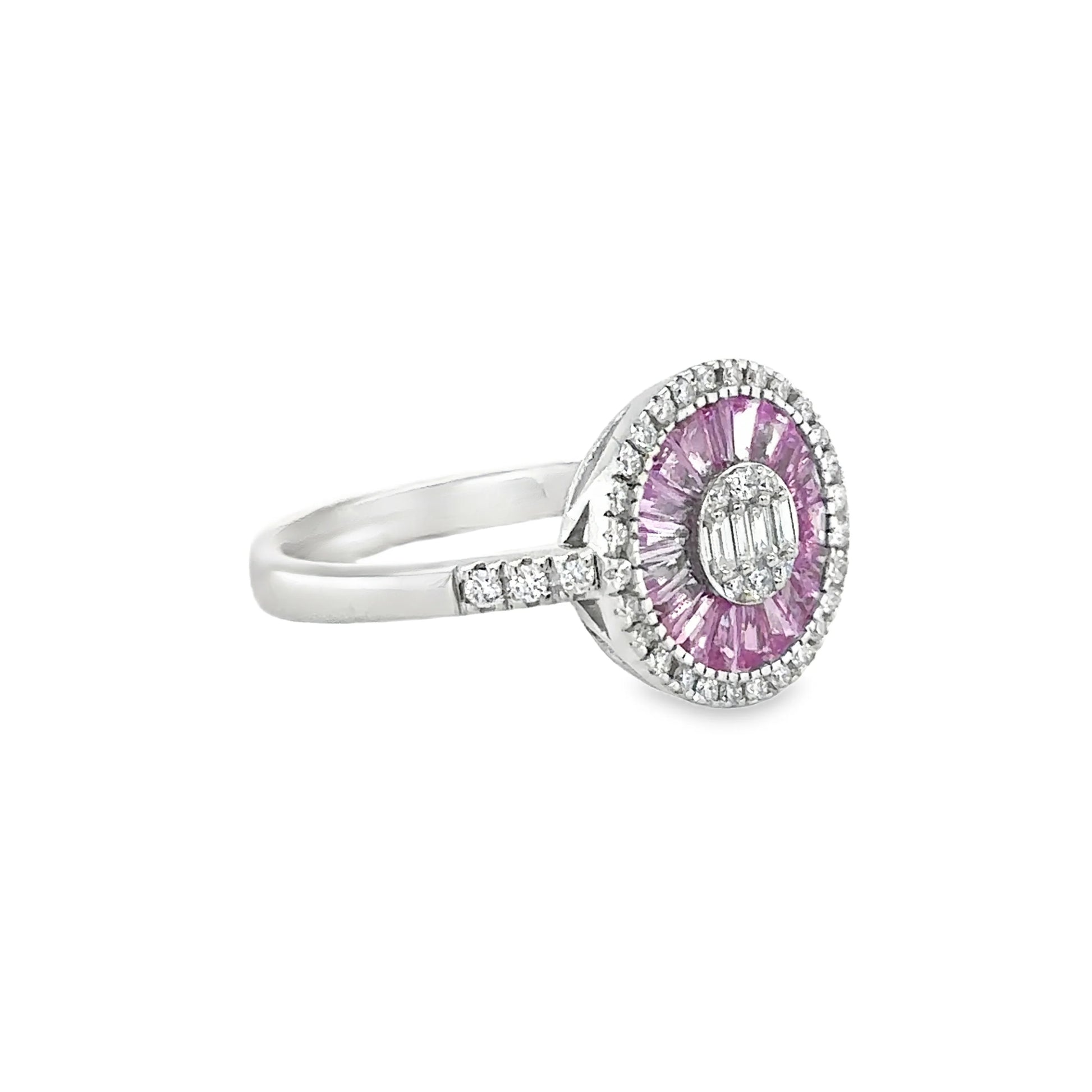 14KT WHITE GOLD PINK SAPPHIRE AND DIAMONDS RING