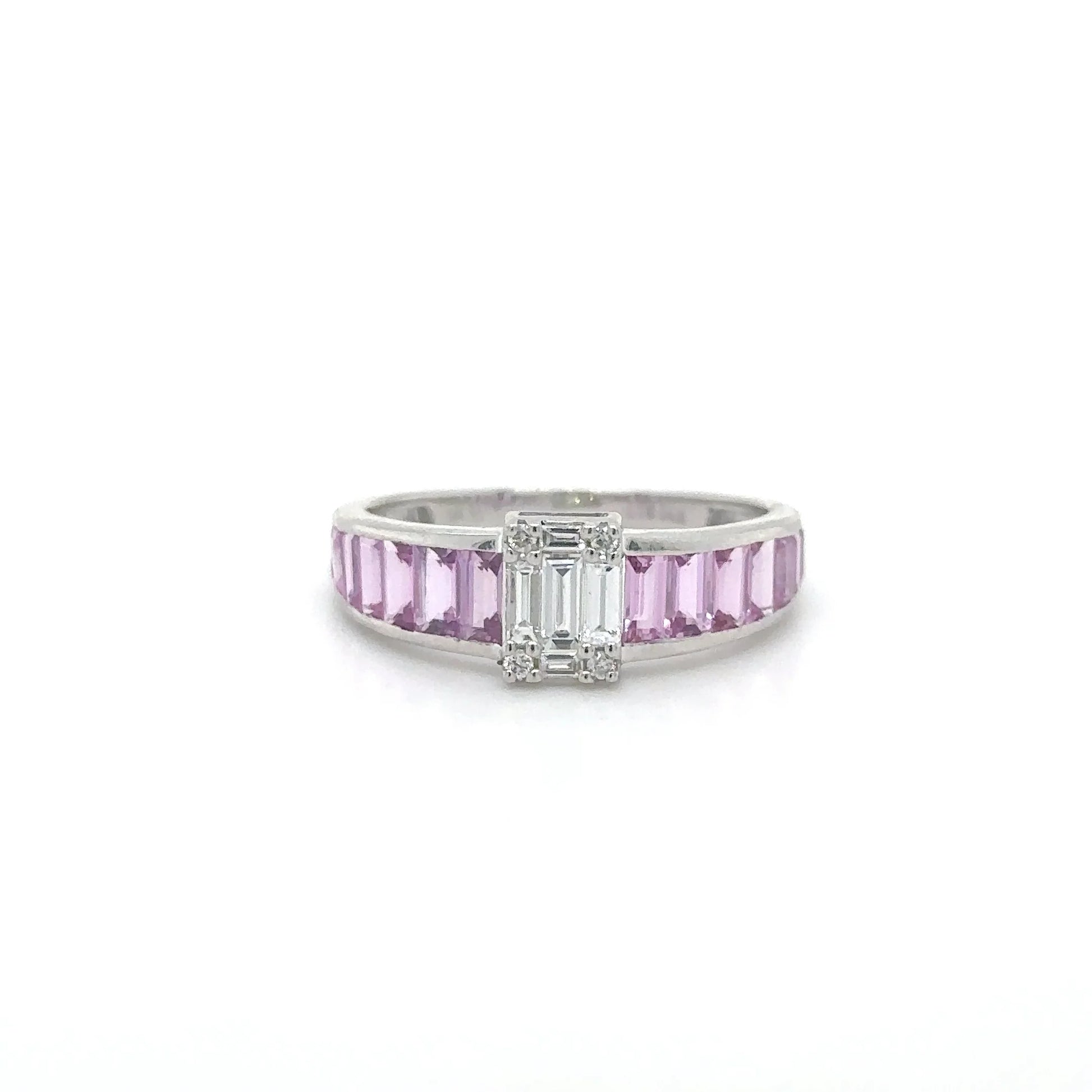 14KT WHITE GOLD PINK SAPPHIRE WITH DIAMONDS RING