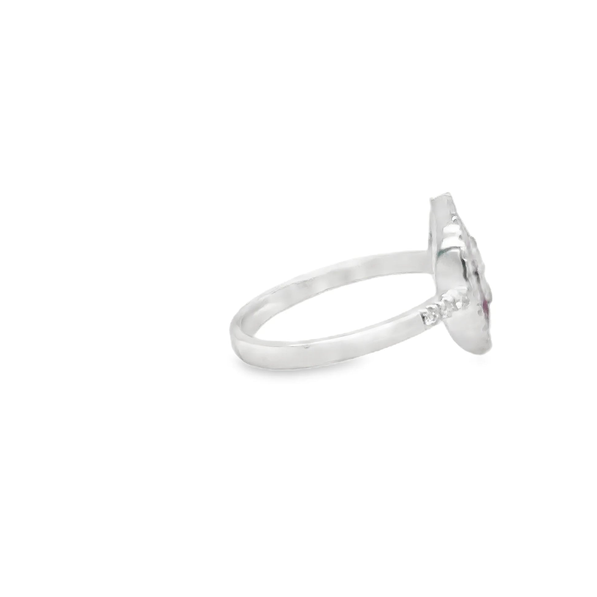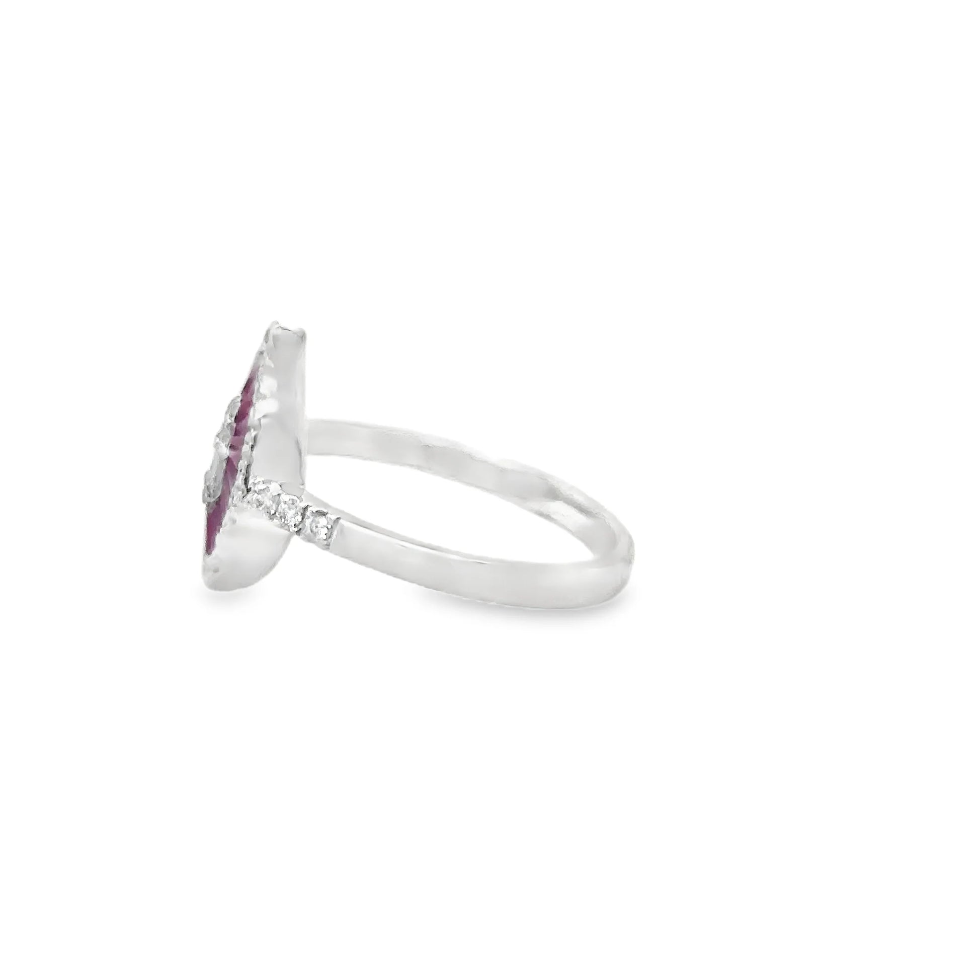14KT WHITE GOLD RUBY AND DIAMONDS PEAR SHAPE RING