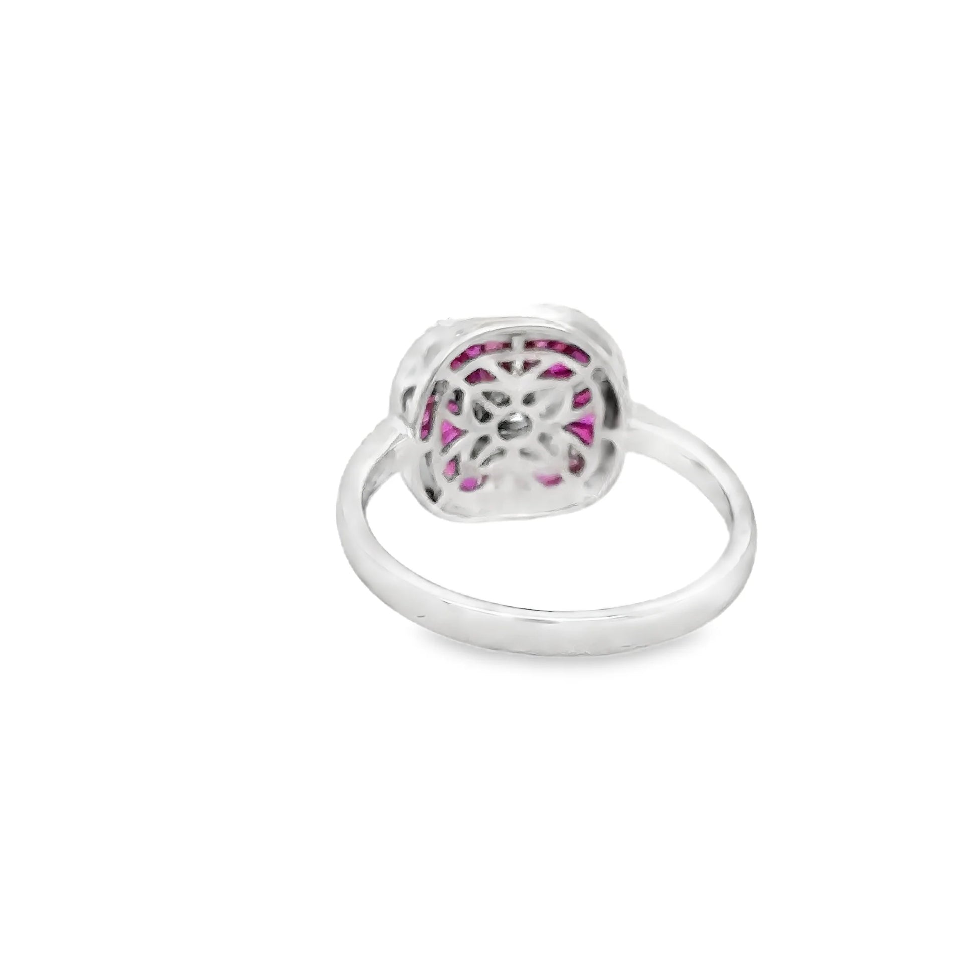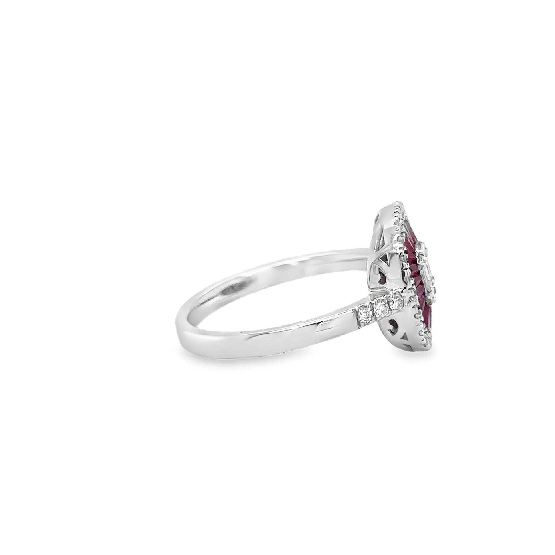 14KT WHITE GOLD RUBY AND DIAMONDS RING