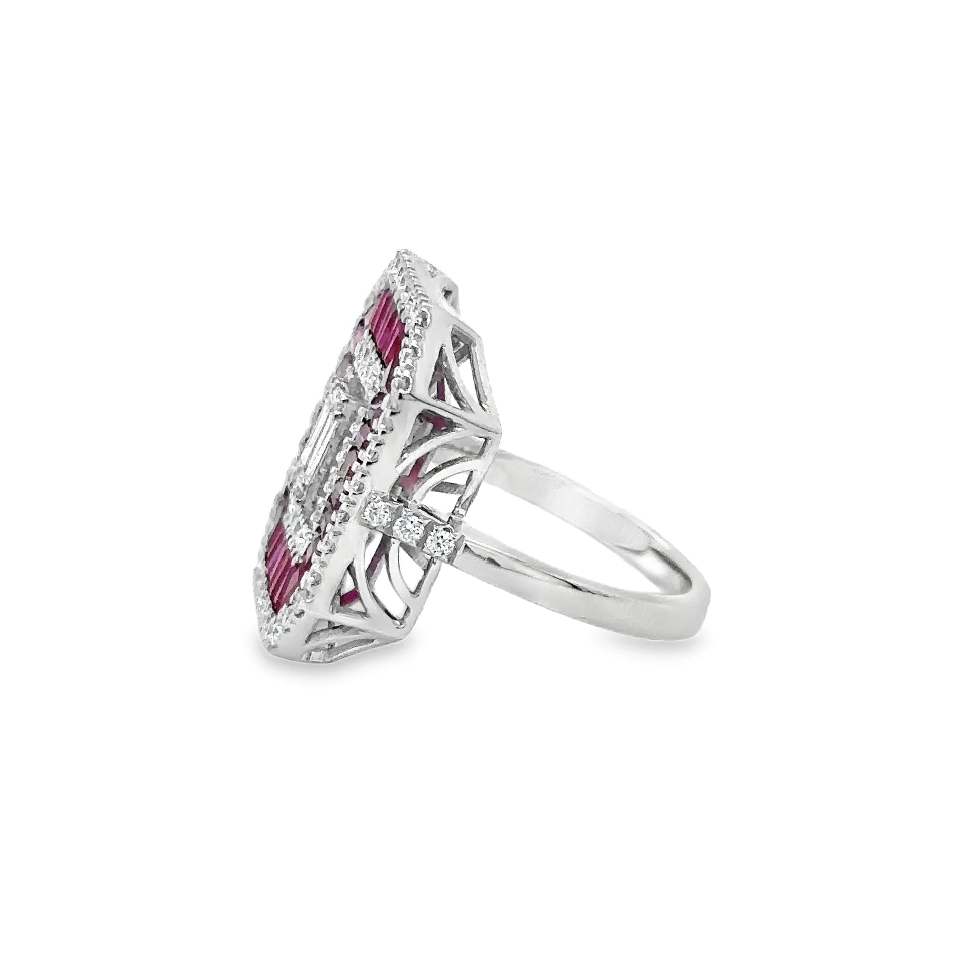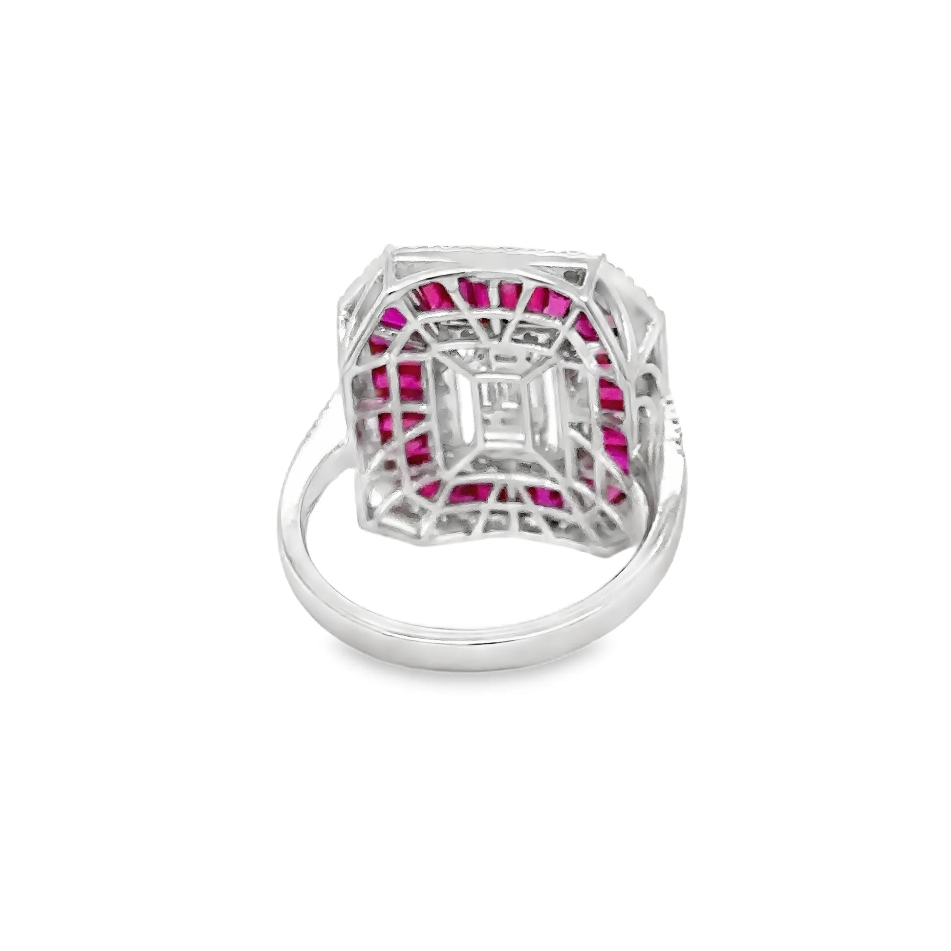 14KT WHITE GOLD RUBY AND DIAMONDS RING