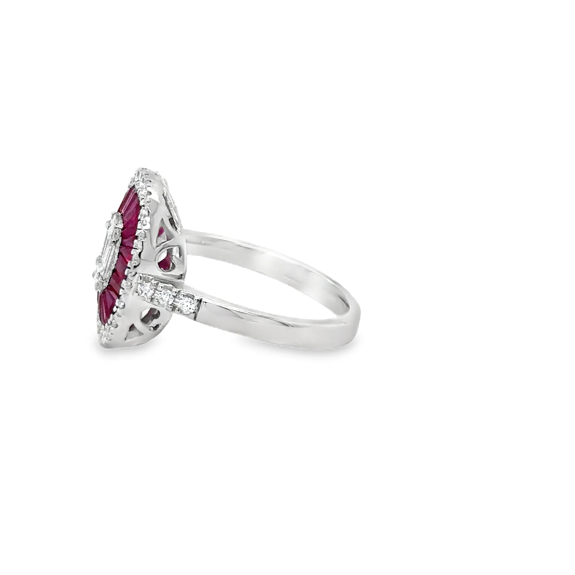 14KT WHITE GOLD RUBY AND DIAMONDS RING