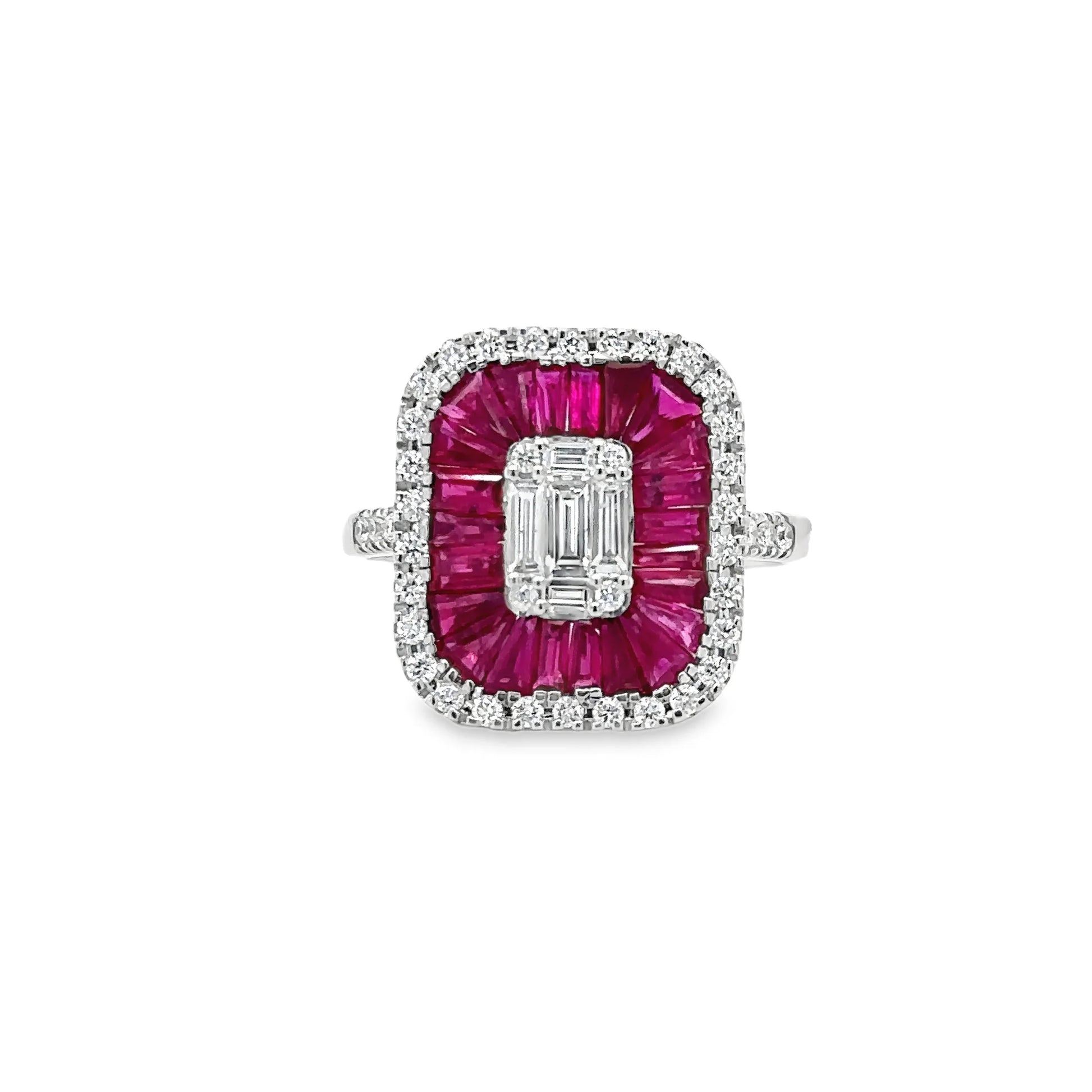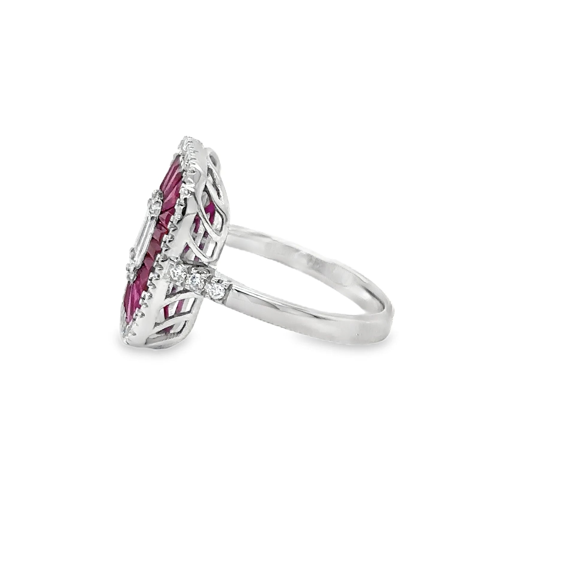 14KT WHITE GOLD RUBY AND DIAMONDS RING
