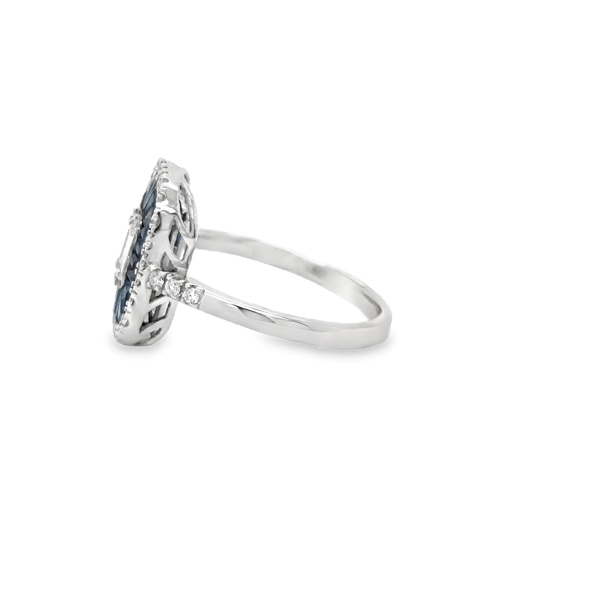 14KT WHITE GOLD SAPPHIRE AND DIAMONDS RING