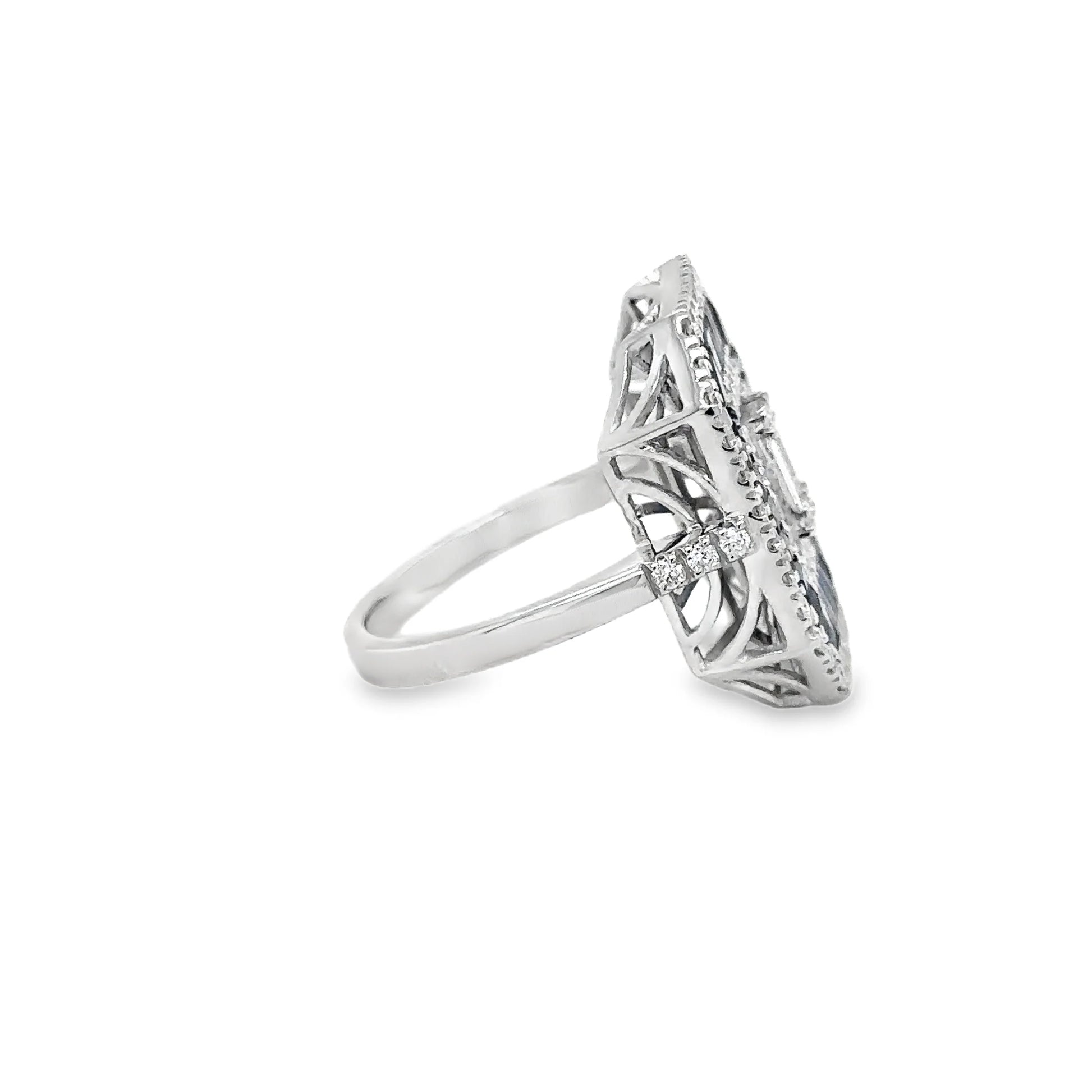 14KT WHITE GOLD SAPPHIRE AND DIAMONDS RING