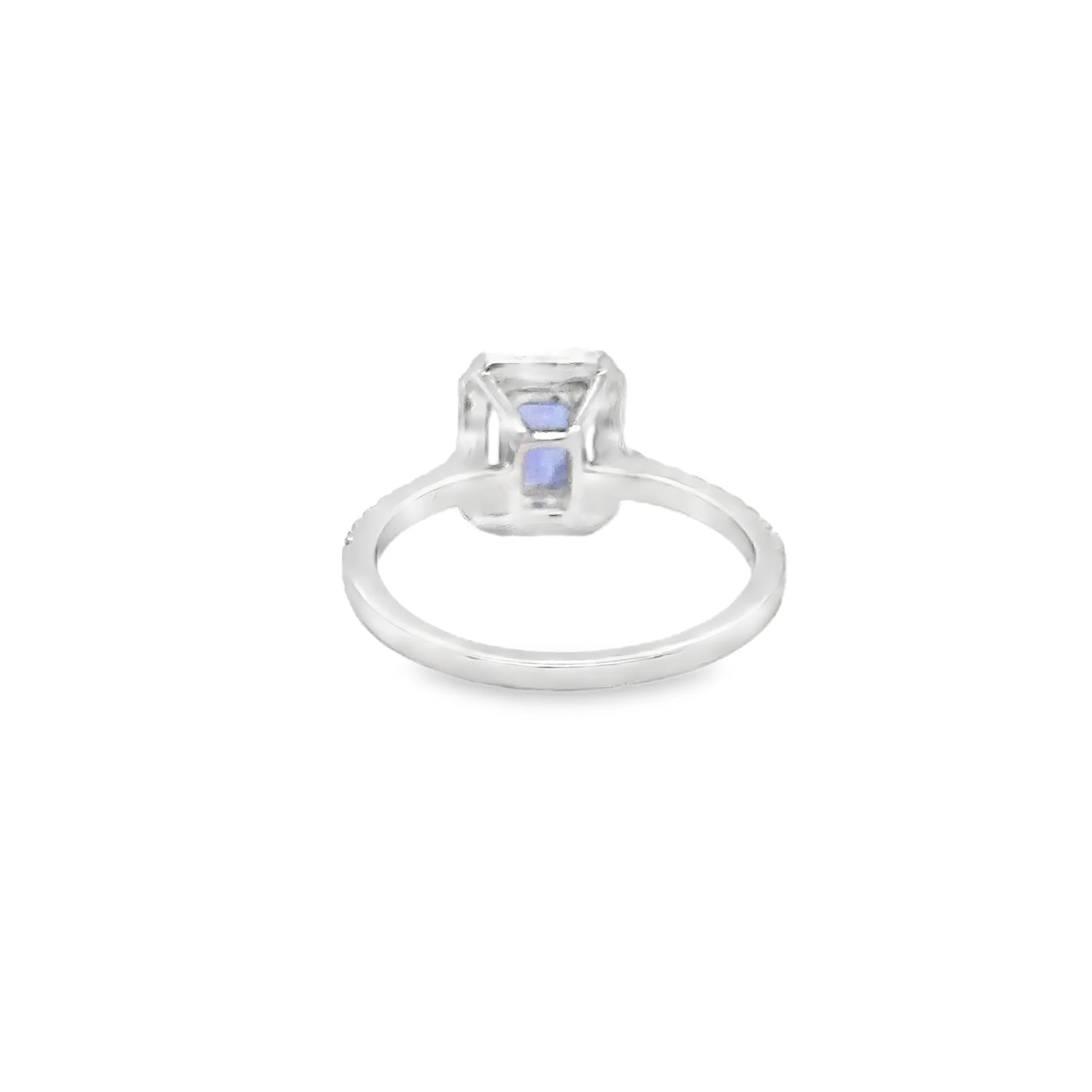 14KT WHITE GOLD TANZANITE EMERALD CUT WITH DIAMONDS RING