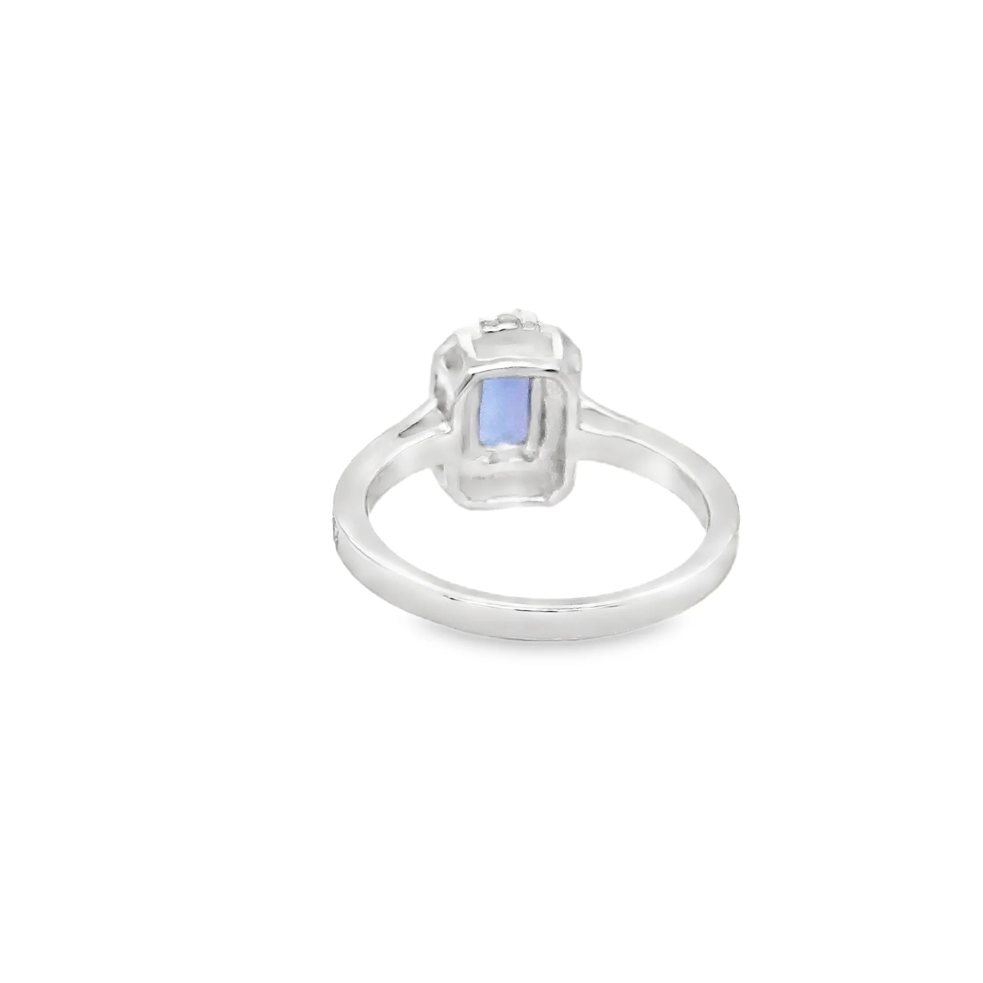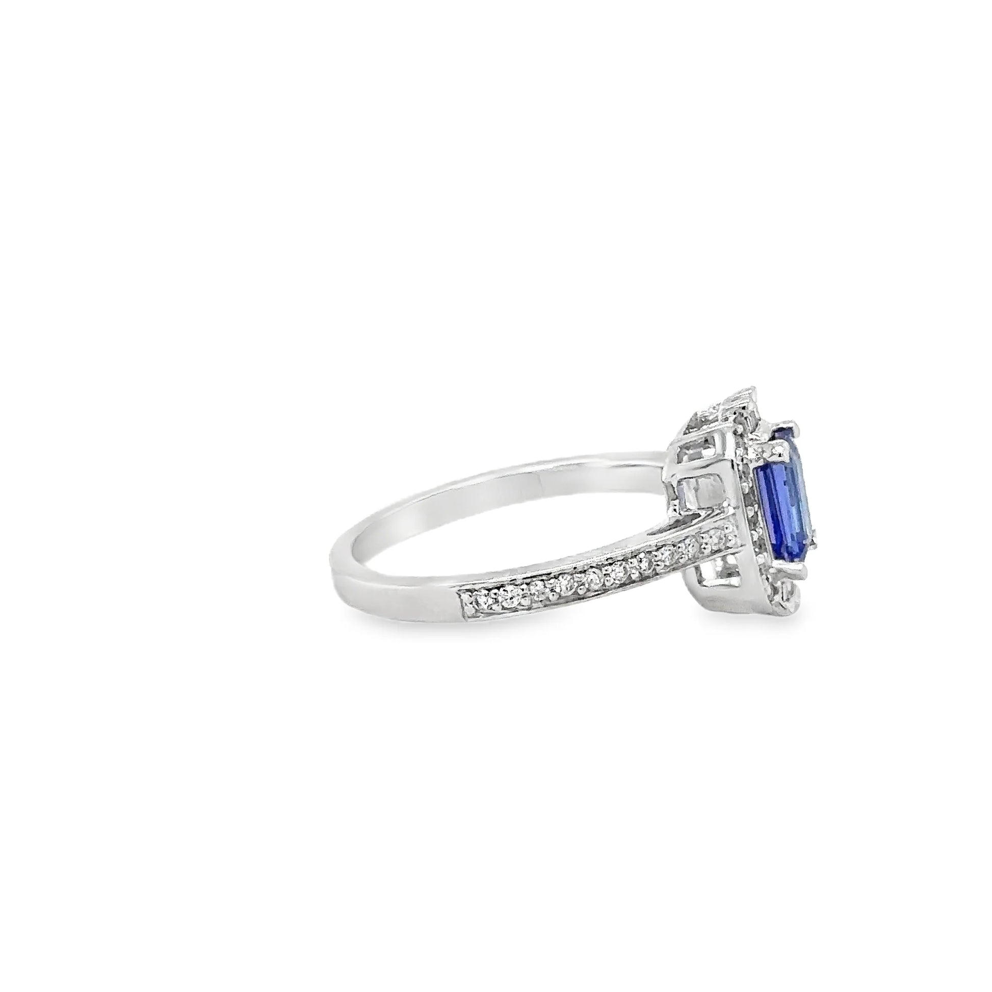 14KT WHITE GOLD TANZANITE EMERALD CUT WITH DIAMONDS RING