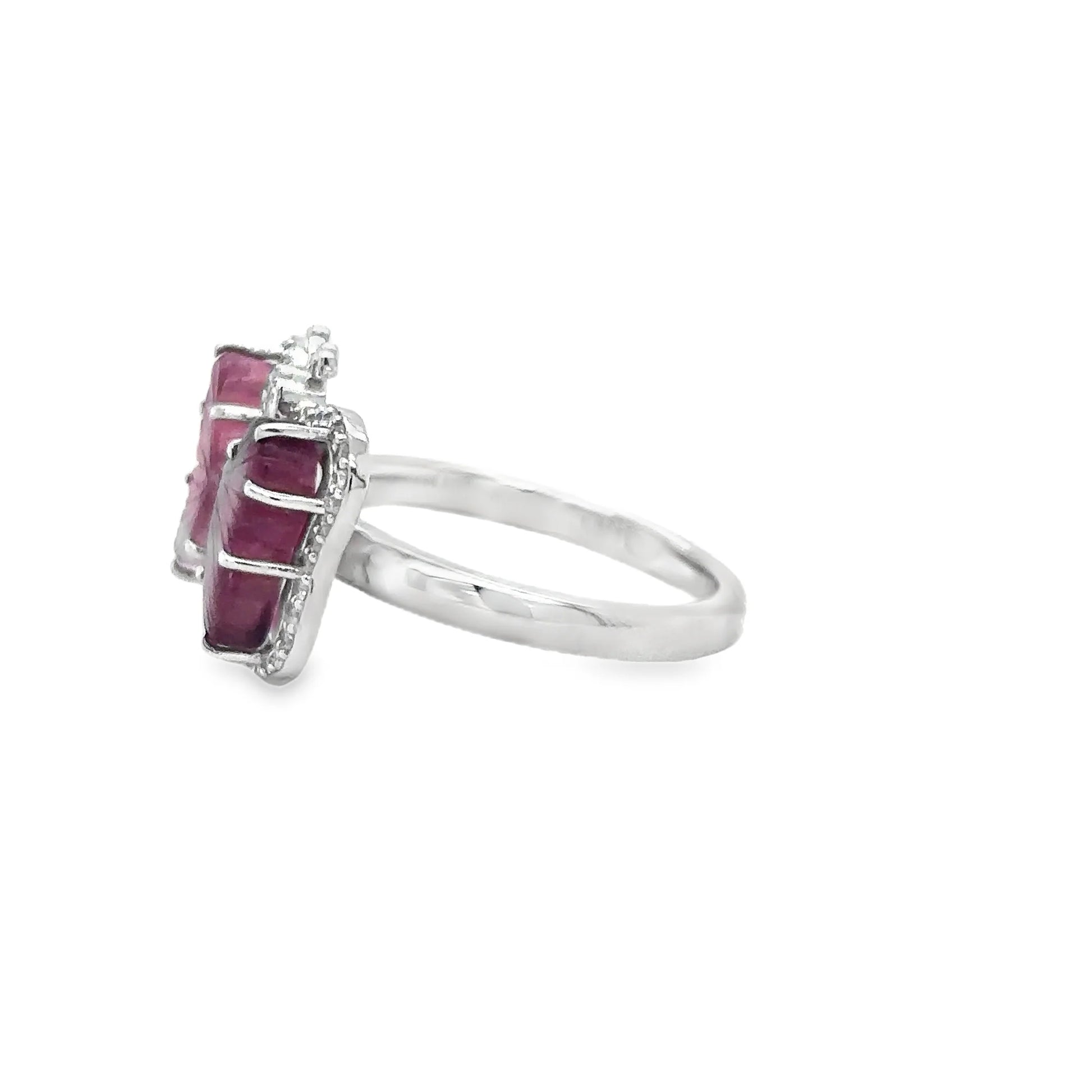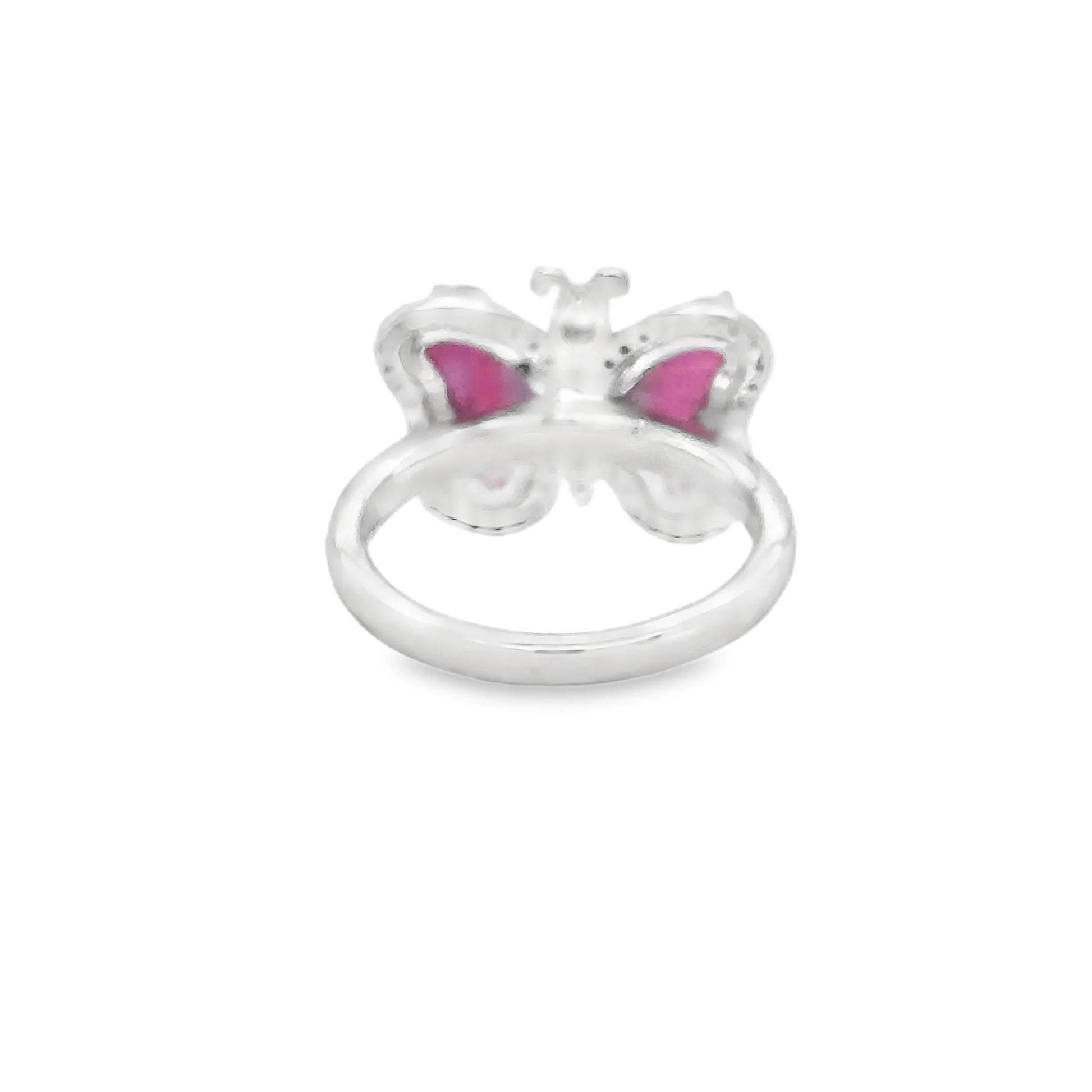 14KT WHITE GOLD WATERMELON TOURMALINE AND DIAMONDS BUTTERFLY RING
