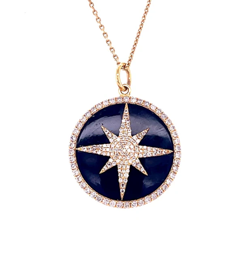14KT YELLOW GOLD BLACK ONYX PENDANT WITH DIAMONDS