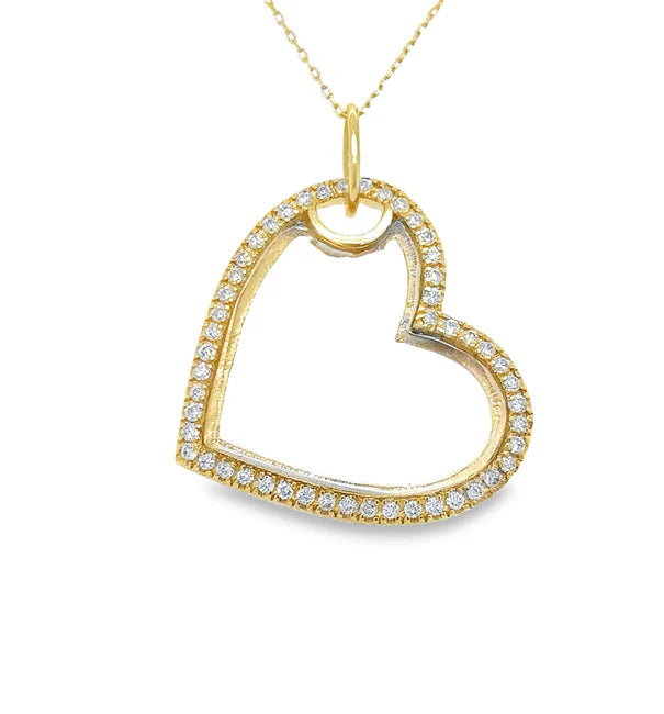 14KT YELLOW GOLD CLEAR QUARTZ HEART PENDANT WITH DIAMONDS