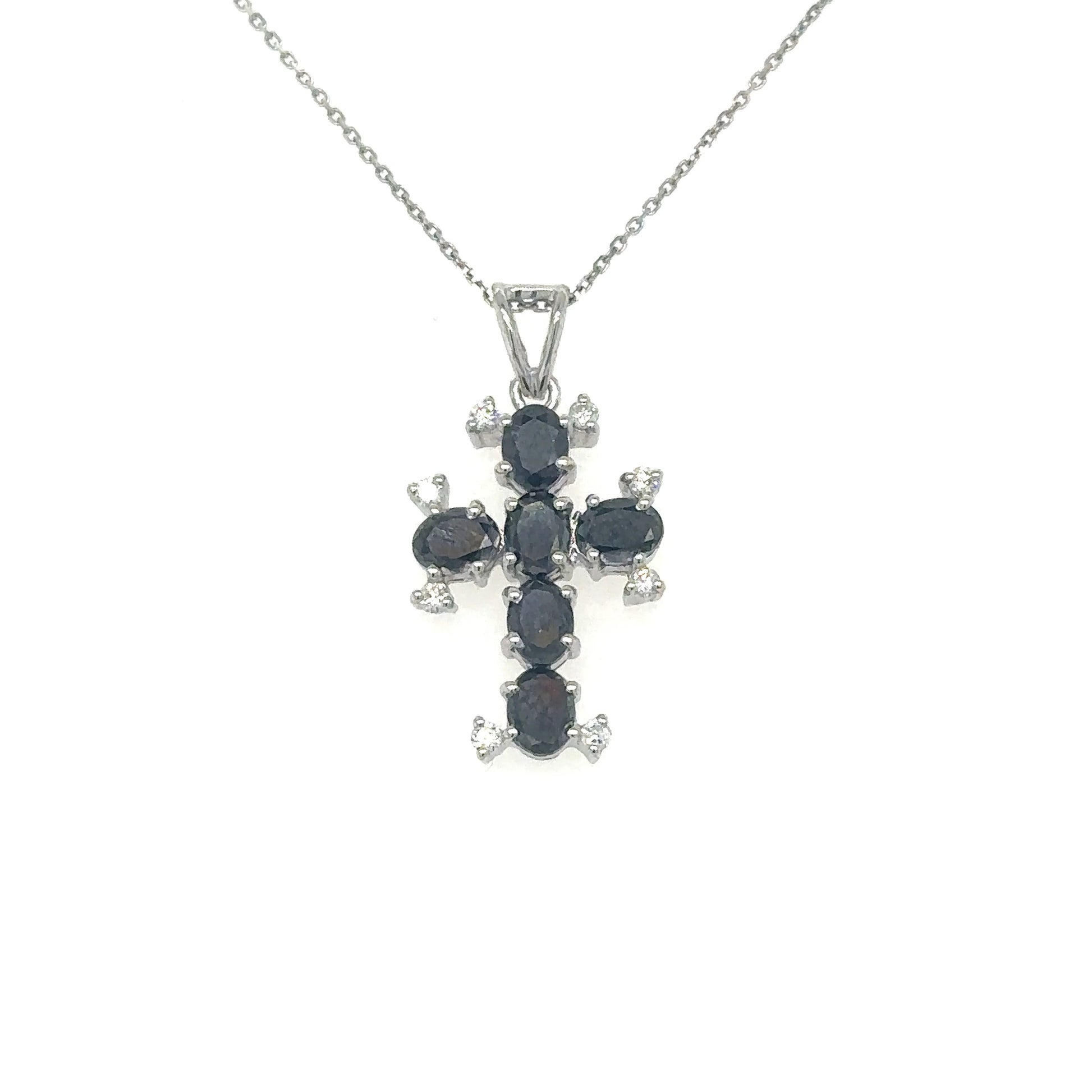 14KT YELLOW GOLD CROSS WITH BLACK DIAMONDS PENDANT