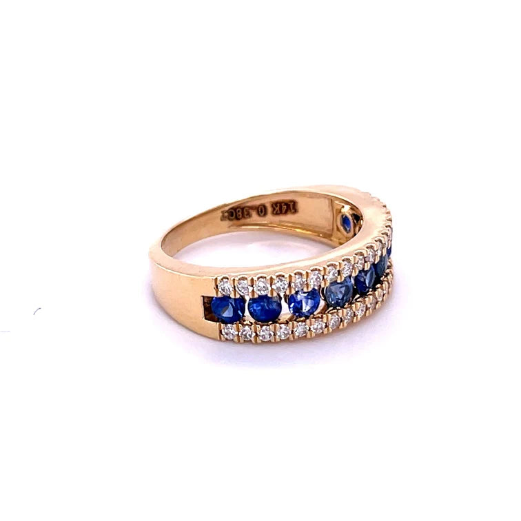 14KT YELLOW GOLD DIAMOND AND BLUE SAPPHIRE RING