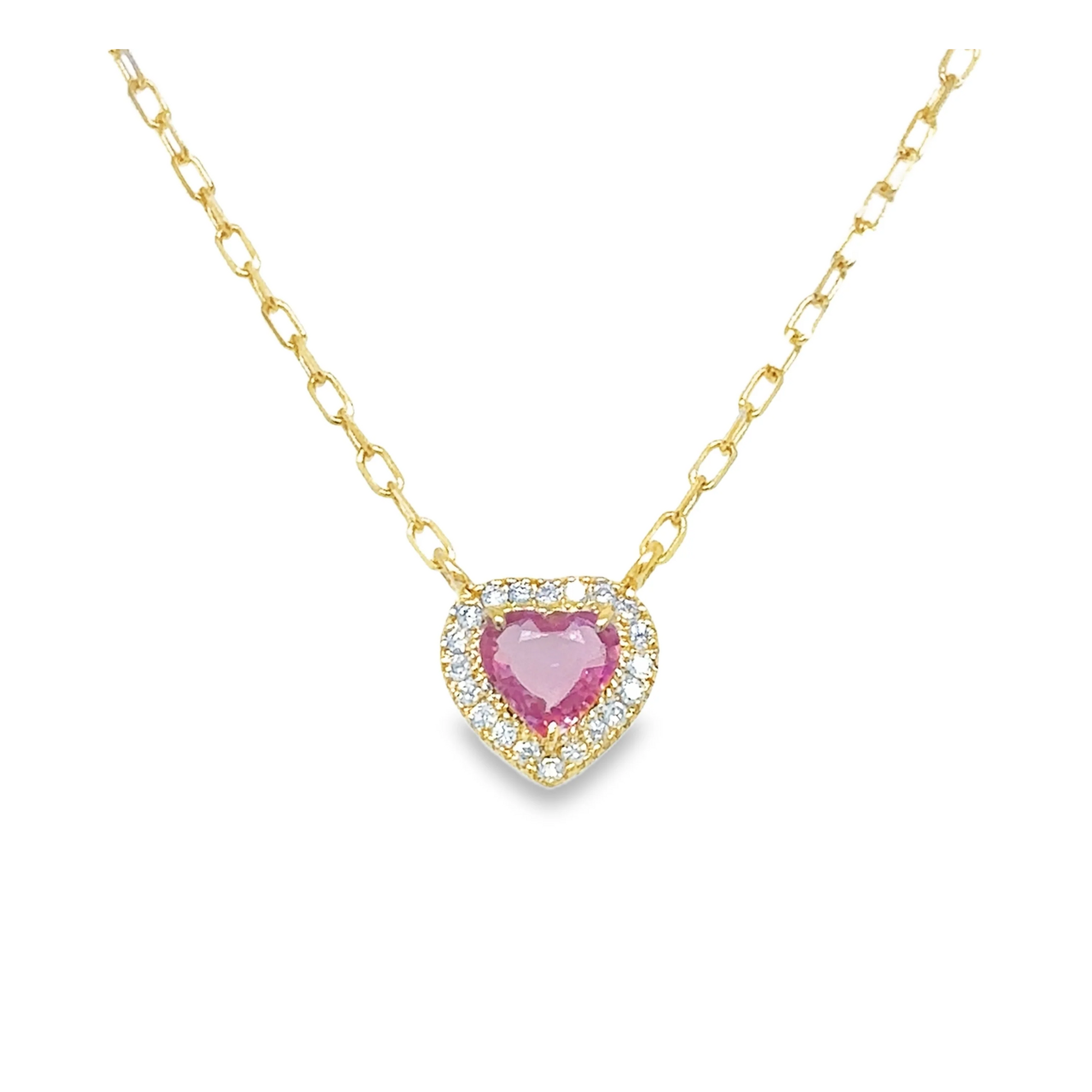 14KT YELLOW GOLD DIAMOND AND PINK SAPPHIRE HEART NECKLACE