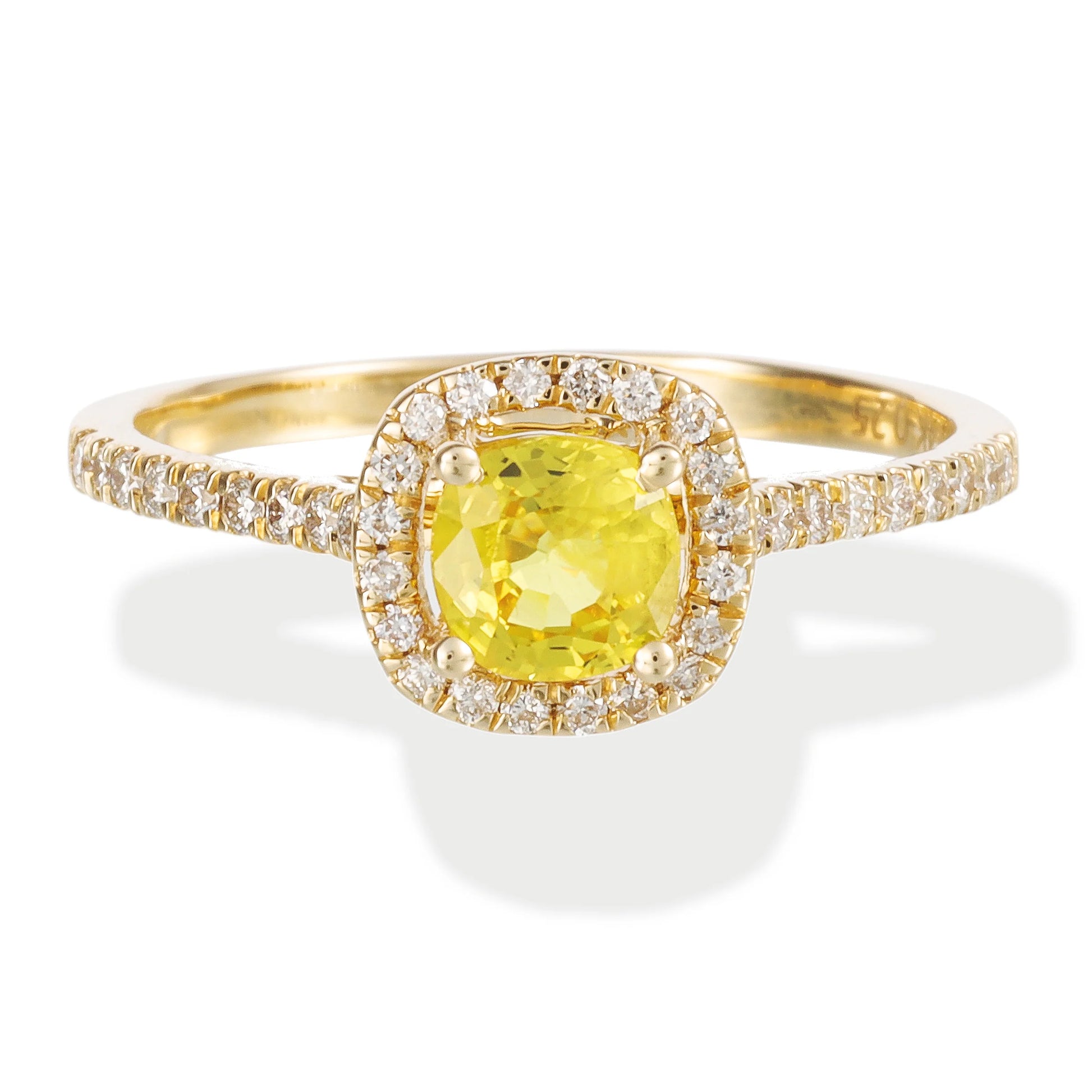 14KT YELLOW GOLD DIAMOND & YELLOW SAPPHIRE CUSHION SHAPE RING