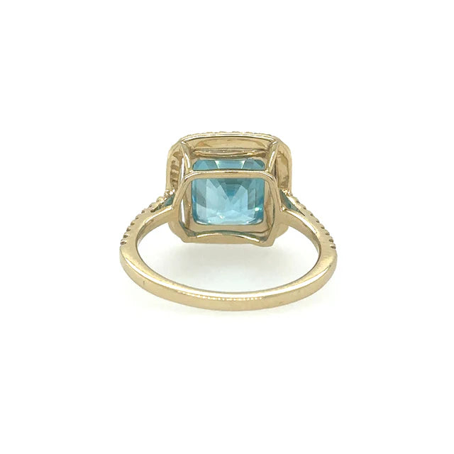14KT YELLOW GOLD DIAMONDS AND BLUE ZIRCON RING