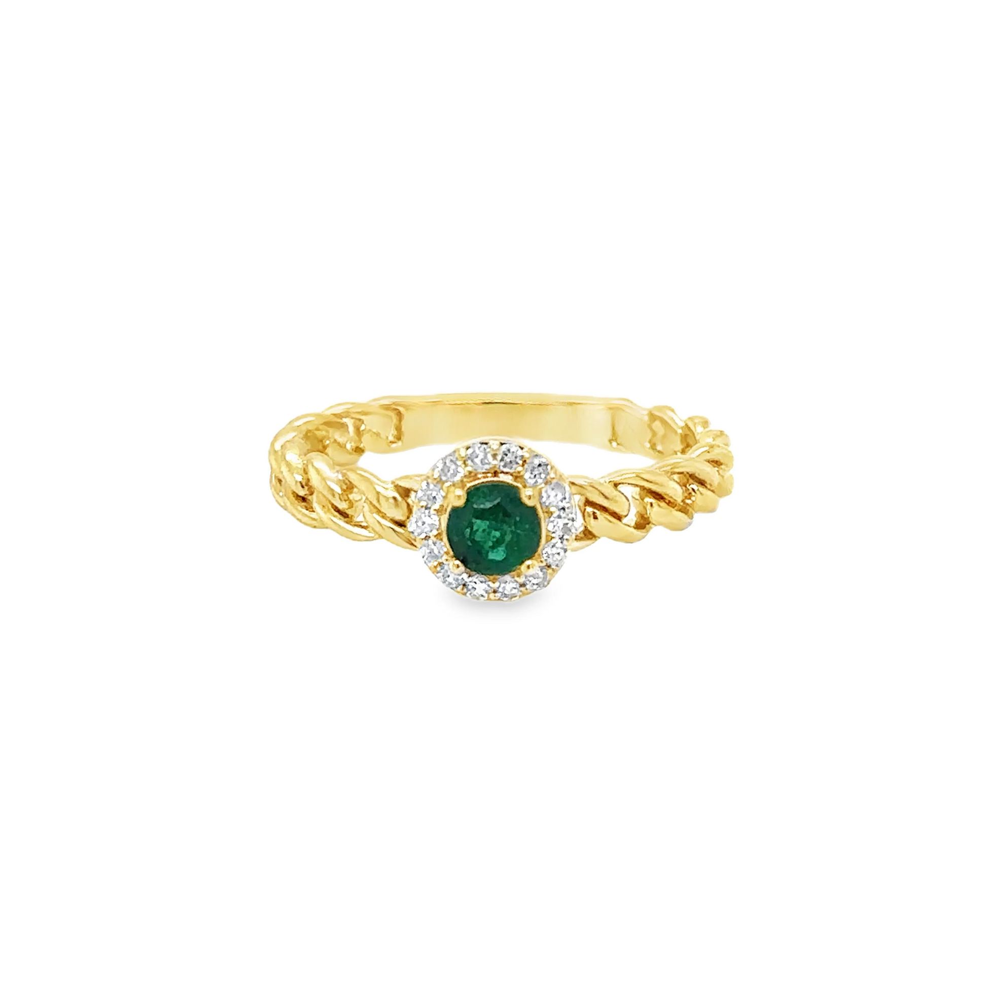 14KT YELLOW GOLD EMERALD AND DIAMOND RING