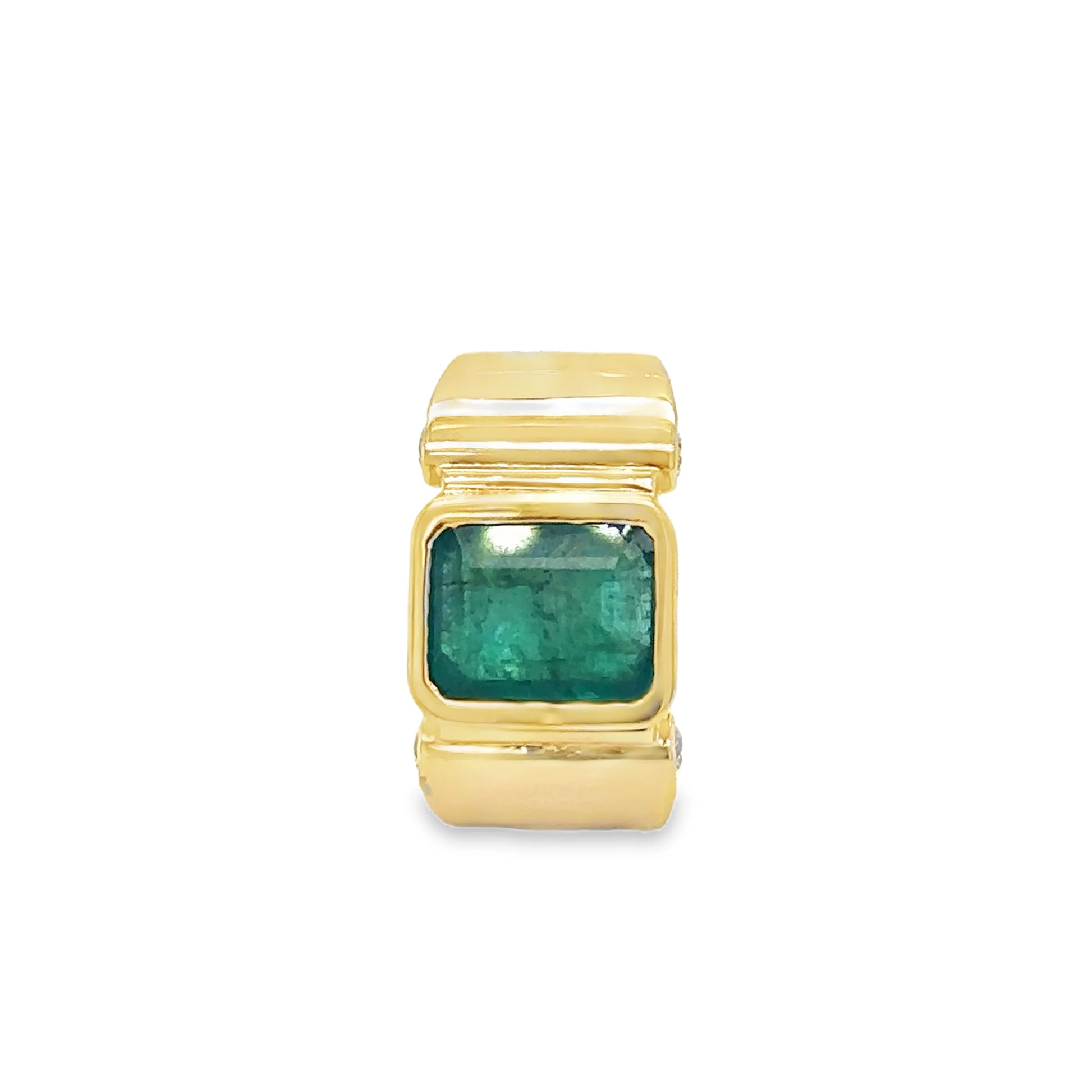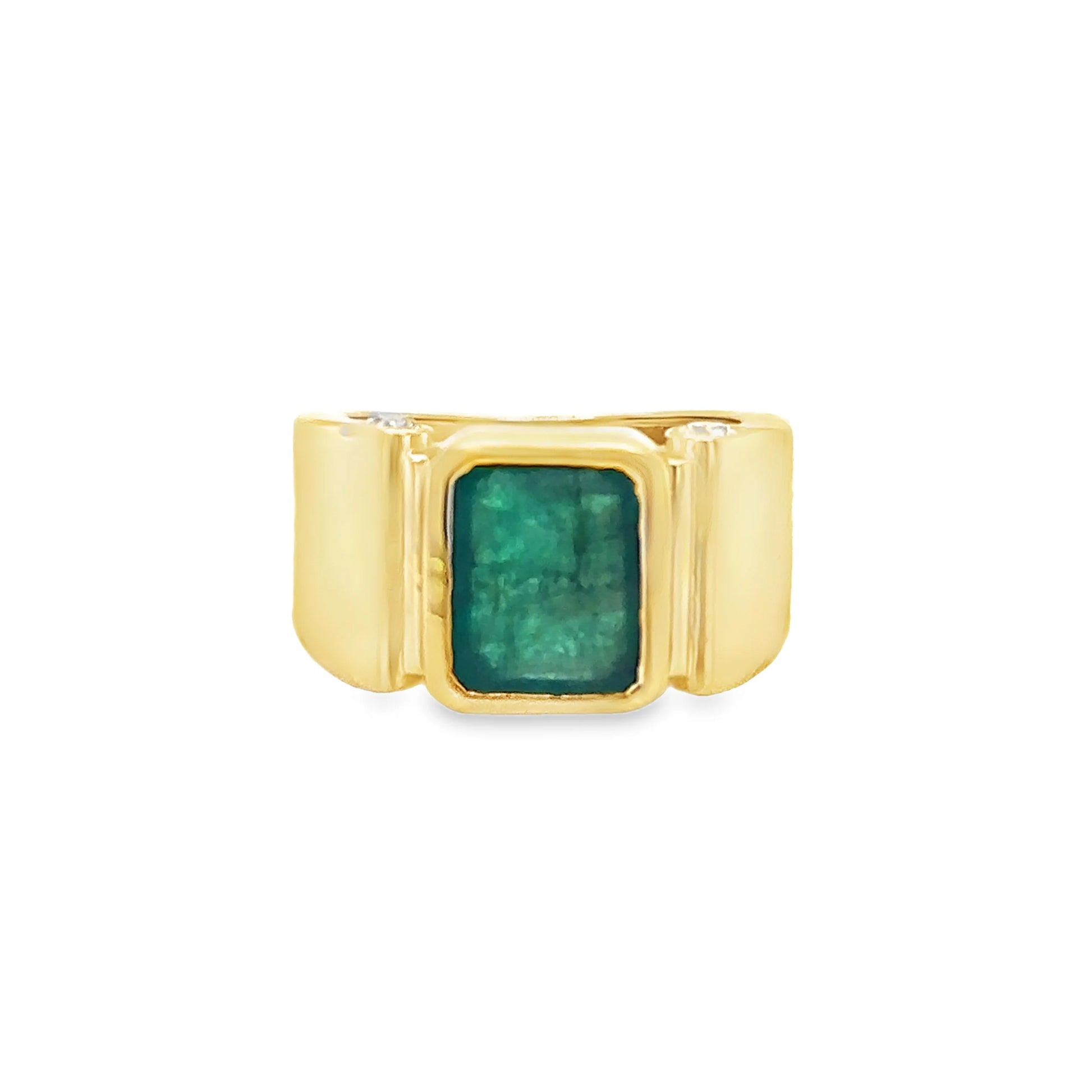 14KT YELLOW GOLD EMERALD AND DIAMOND RING