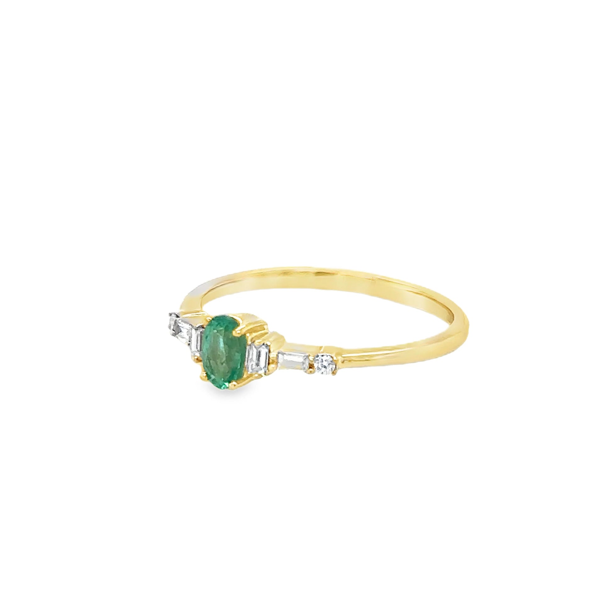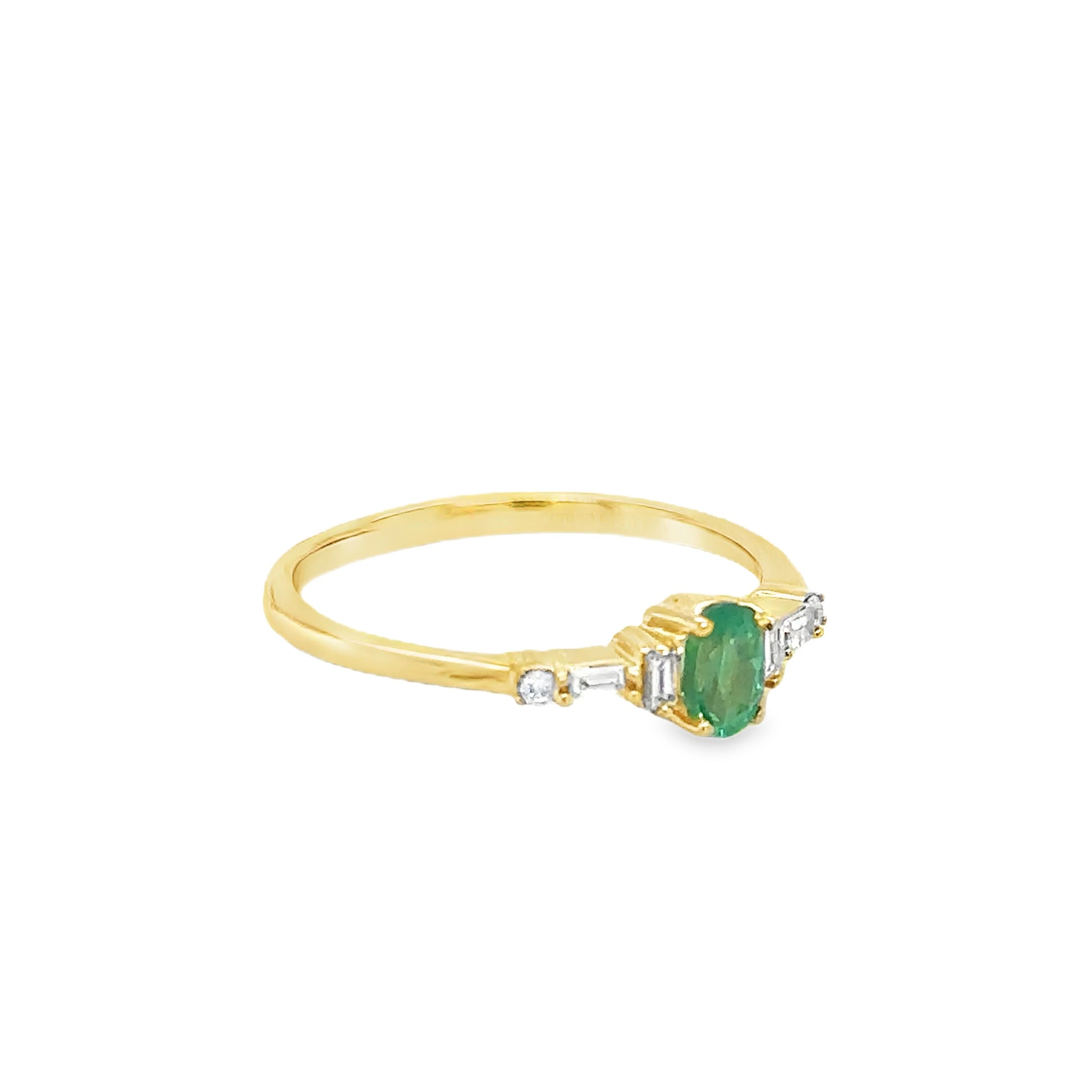 14KT YELLOW GOLD EMERALD AND DIAMOND RING