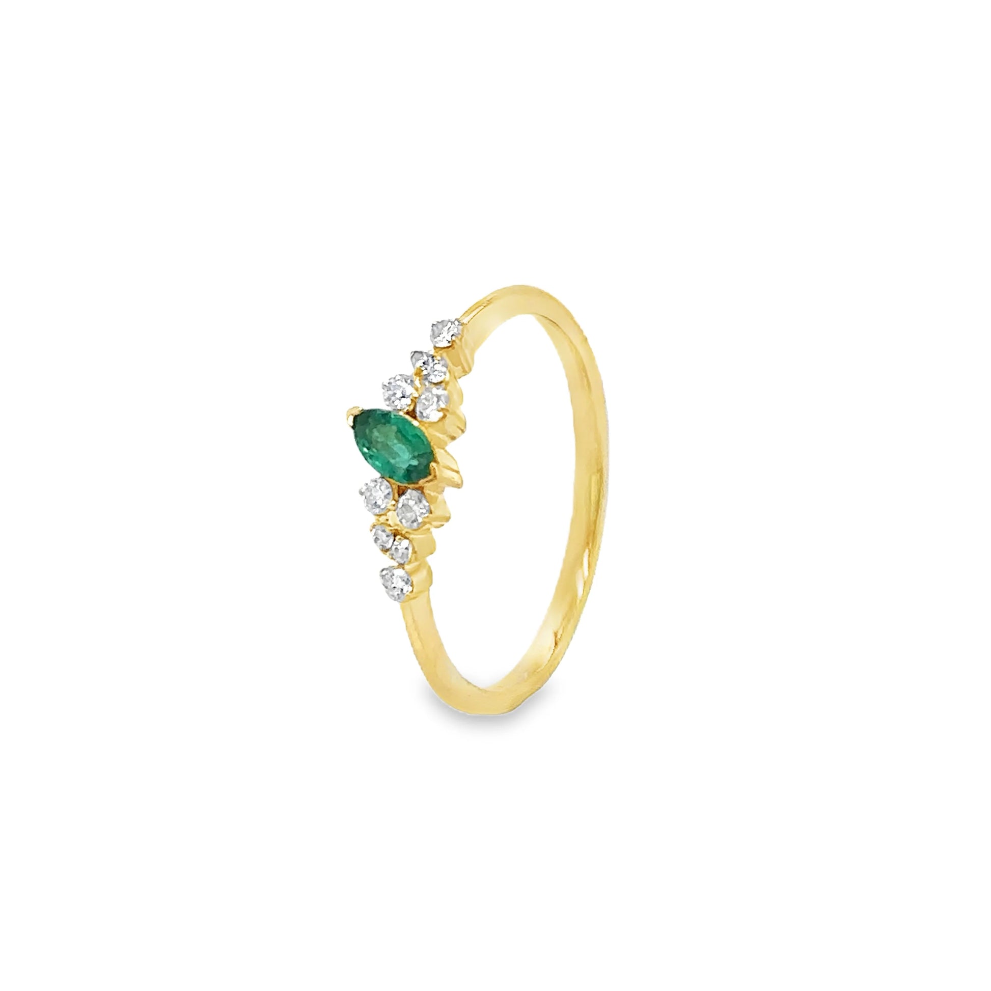 14KT YELLOW GOLD EMERALD AND DIAMOND RING