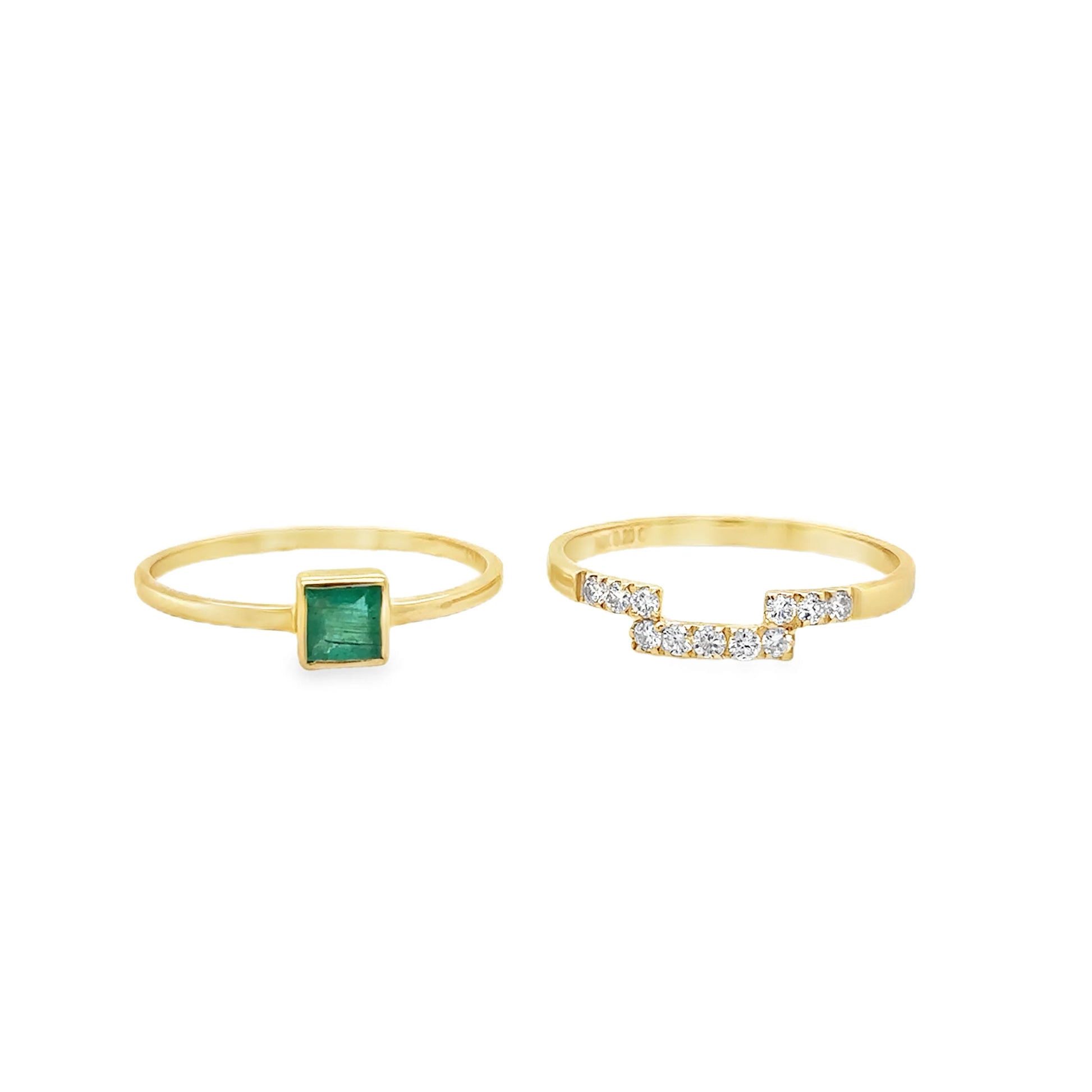 14KT YELLOW GOLD EMERALD AND DIAMONDS RING